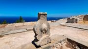 Among the most distinctive architectural elements uncovered at Vouni are the Hathor capitals that once crowned columns around the central courtyard. These capitals depict a stylised female face combining Egyptian religious iconography with distinctly Cypriot carving conventions.
