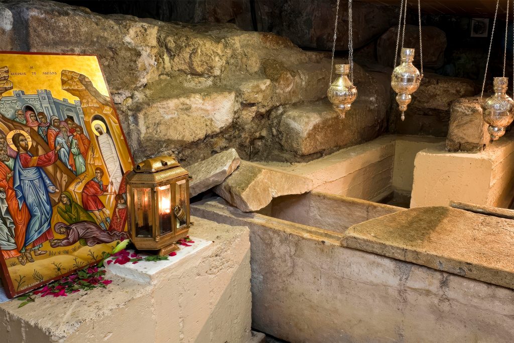 The location of Lazarus’s tomb was believed to have been lost under Arab rule of the island from 649 AD. In 890, a tomb bearing the inscription “Lazarus, four days dead, friend of Christ” was discovered in Larnaca. In 898, Byzantine Emperor Leo VI had Lazarus’s remains transferred to Constantinople.