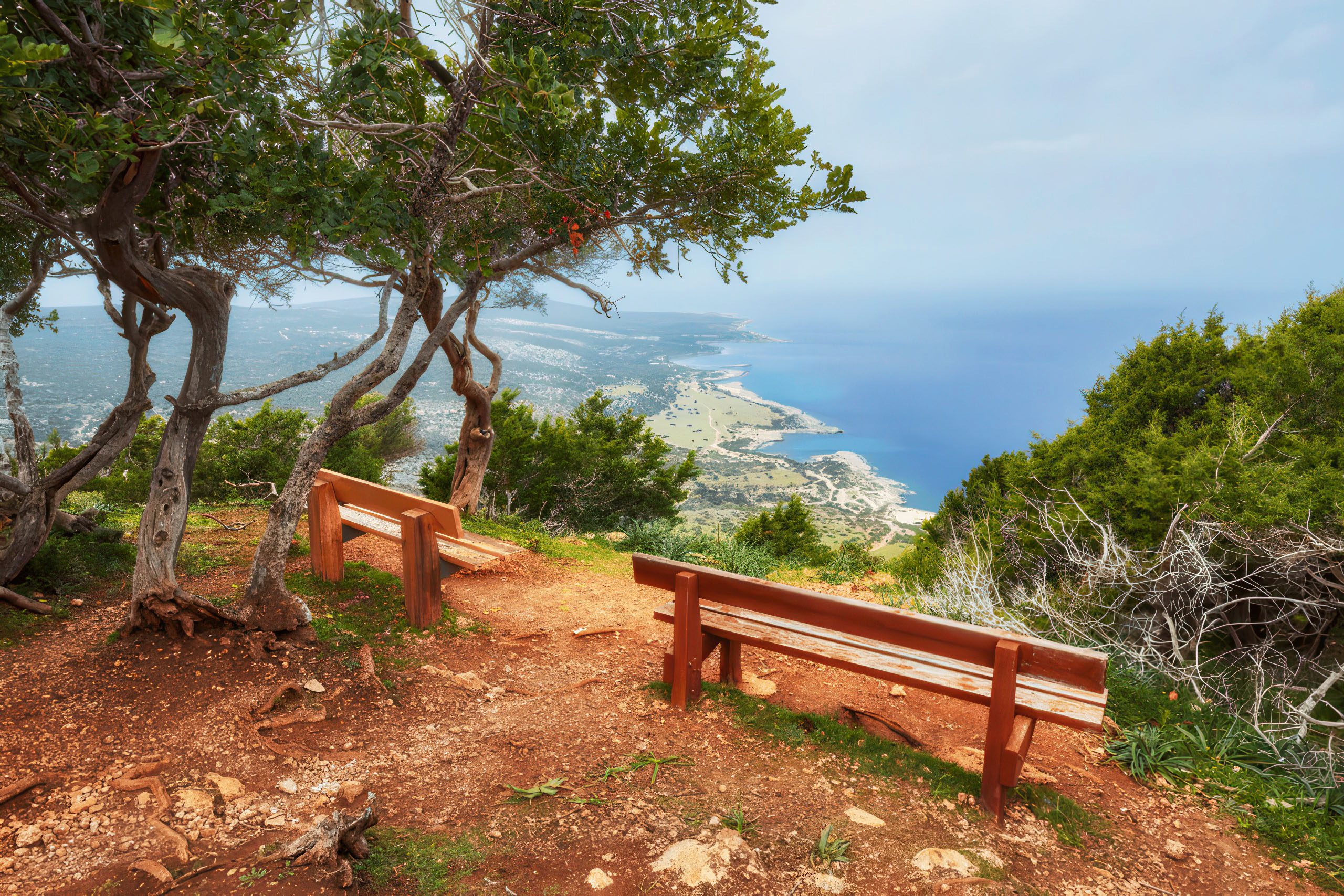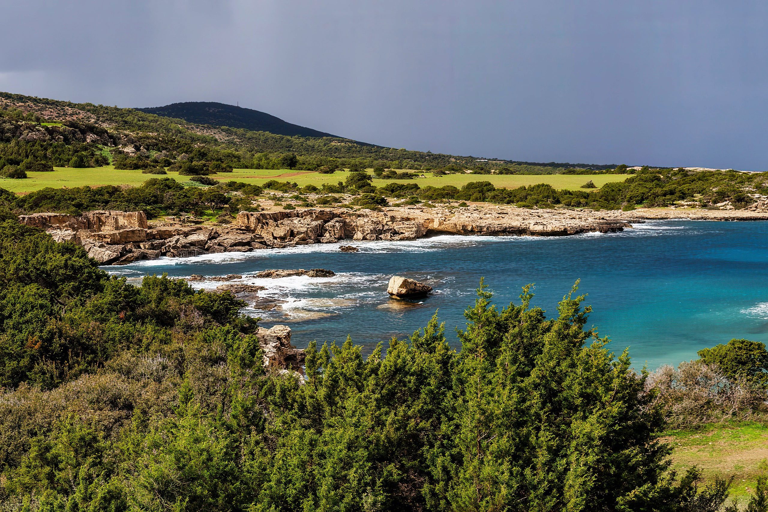 Akamas Peninsula National Park occupies the northwestern tip of Cyprus, beginning just north of Paphos and extending to Cape Arnaoutis. The landscape varies from golden beaches and dramatic coastal cliffs to arid plains covered in Mediterranean scrub and mountain forests of pine and juniper.
