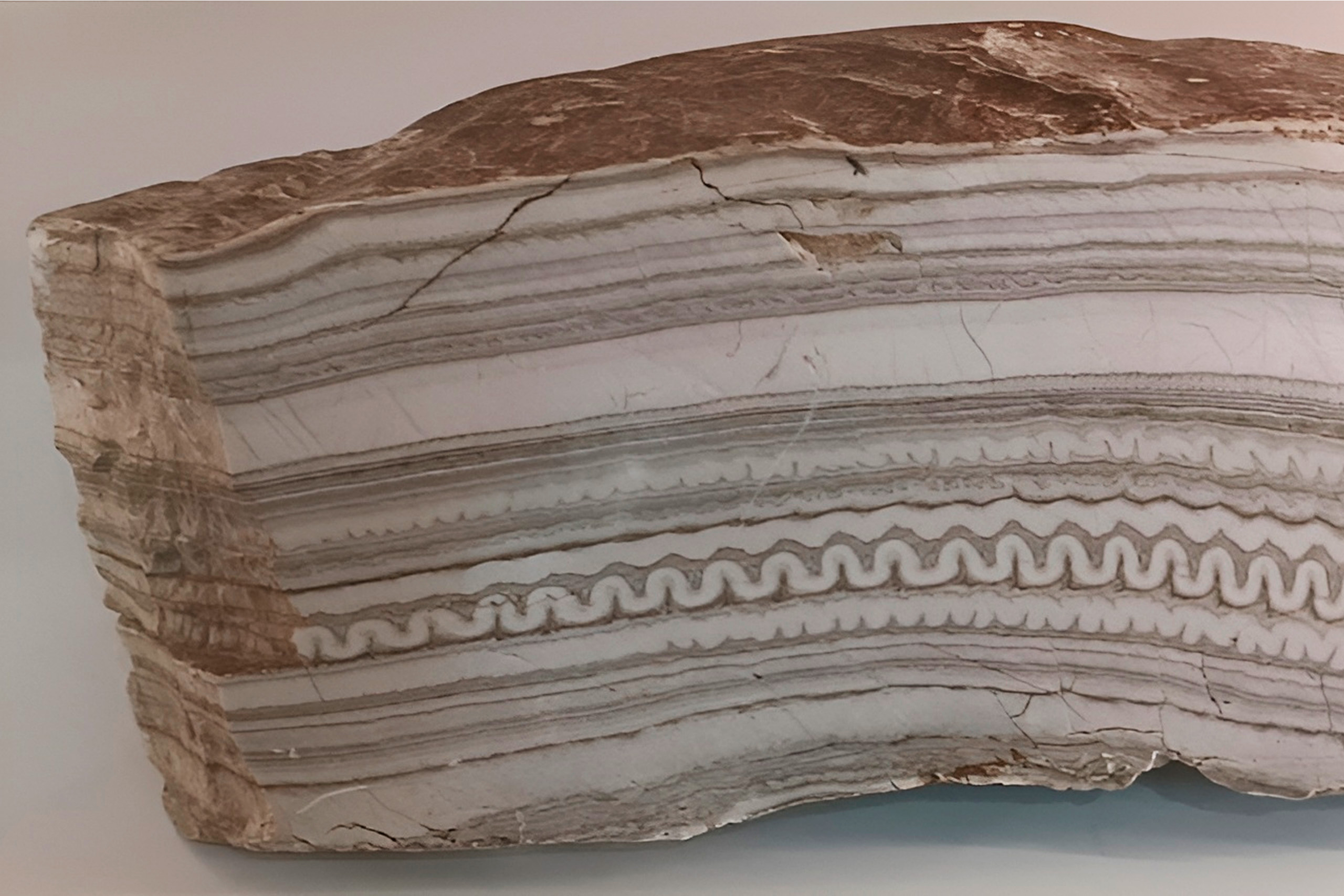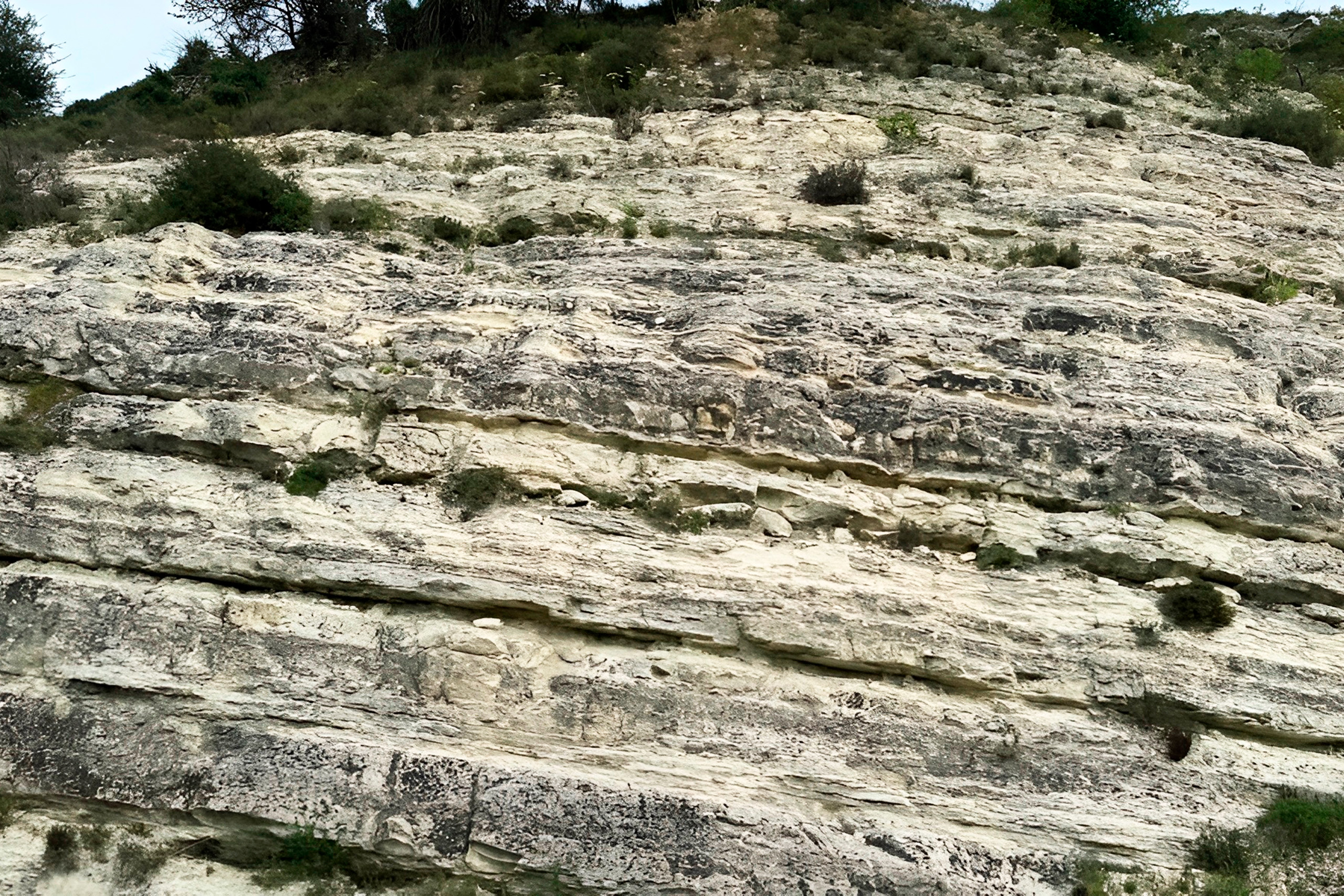 The Almyras mudstones formed during a time when Cyprus lay entirely beneath the ancient Tethys Ocean. Fine clay particles, volcanic ash, and microscopic organisms drifted down through quiet waters, settling slowly on the seabed and accumulating in thin, even layers over millions of years.