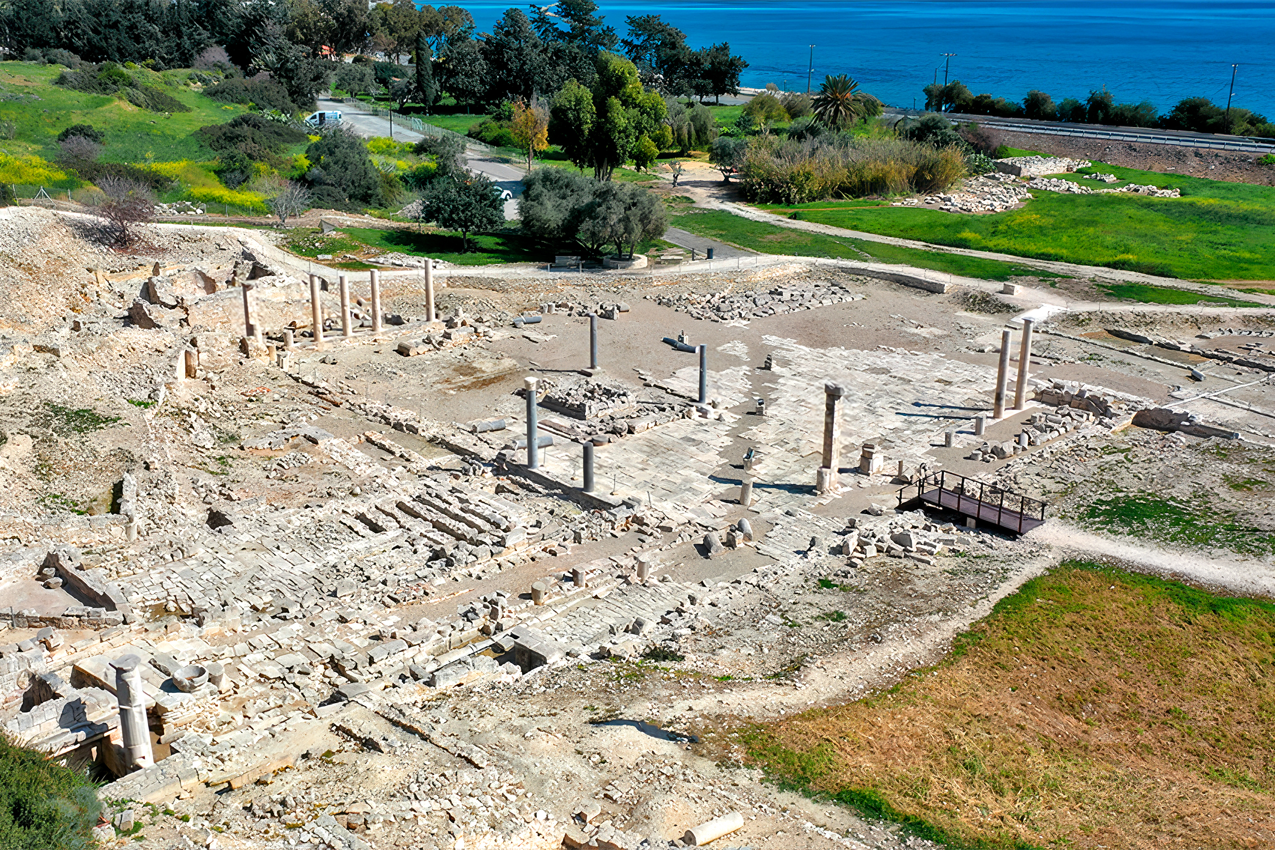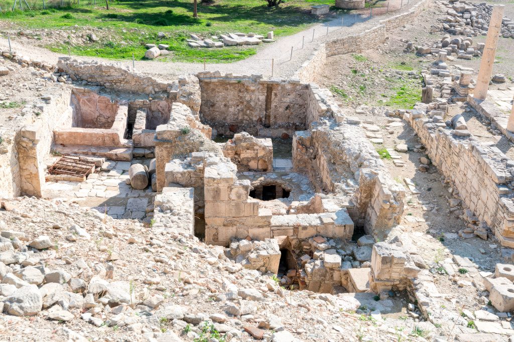 Today, visitors walk through the remains of public baths built during Emperor Hadrian’s time, explore an agora where merchants traded goods from across the Mediterranean, and view foundations of the great Temple of Aphrodite that made this the second most important worship site for the goddess on her homeland island. Below the waves, 60 meters from shore, lie the stone moles of a Hellenistic harbor built during conflicts between Alexander the Great’s successors. This combination of land and underwater remains provides a complete picture of ancient coastal city life.