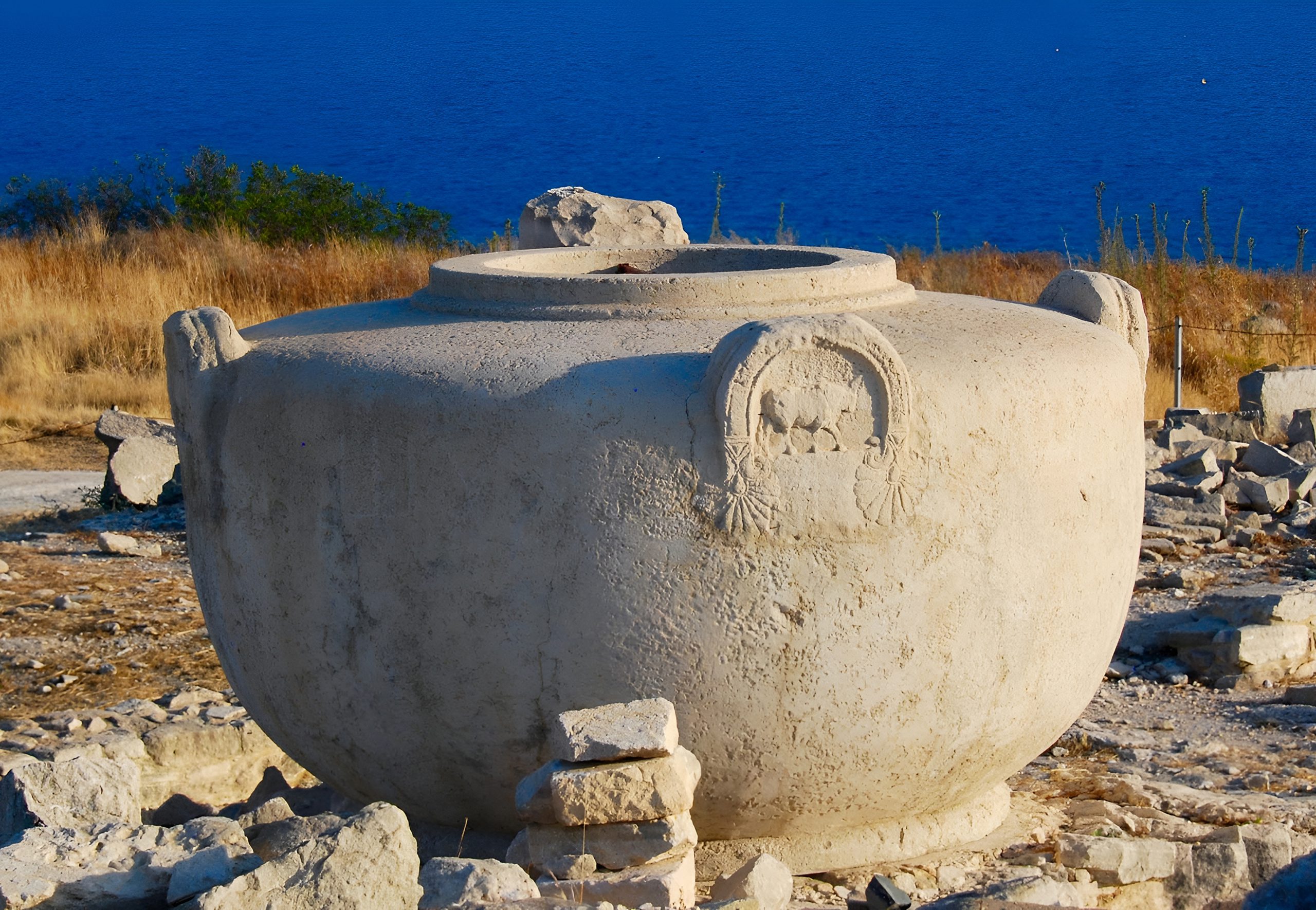 Amathus projected authority through stone: colossal vessels and carved reliefs that required skill, labour coordination, and long-term planning on a civic scale.
