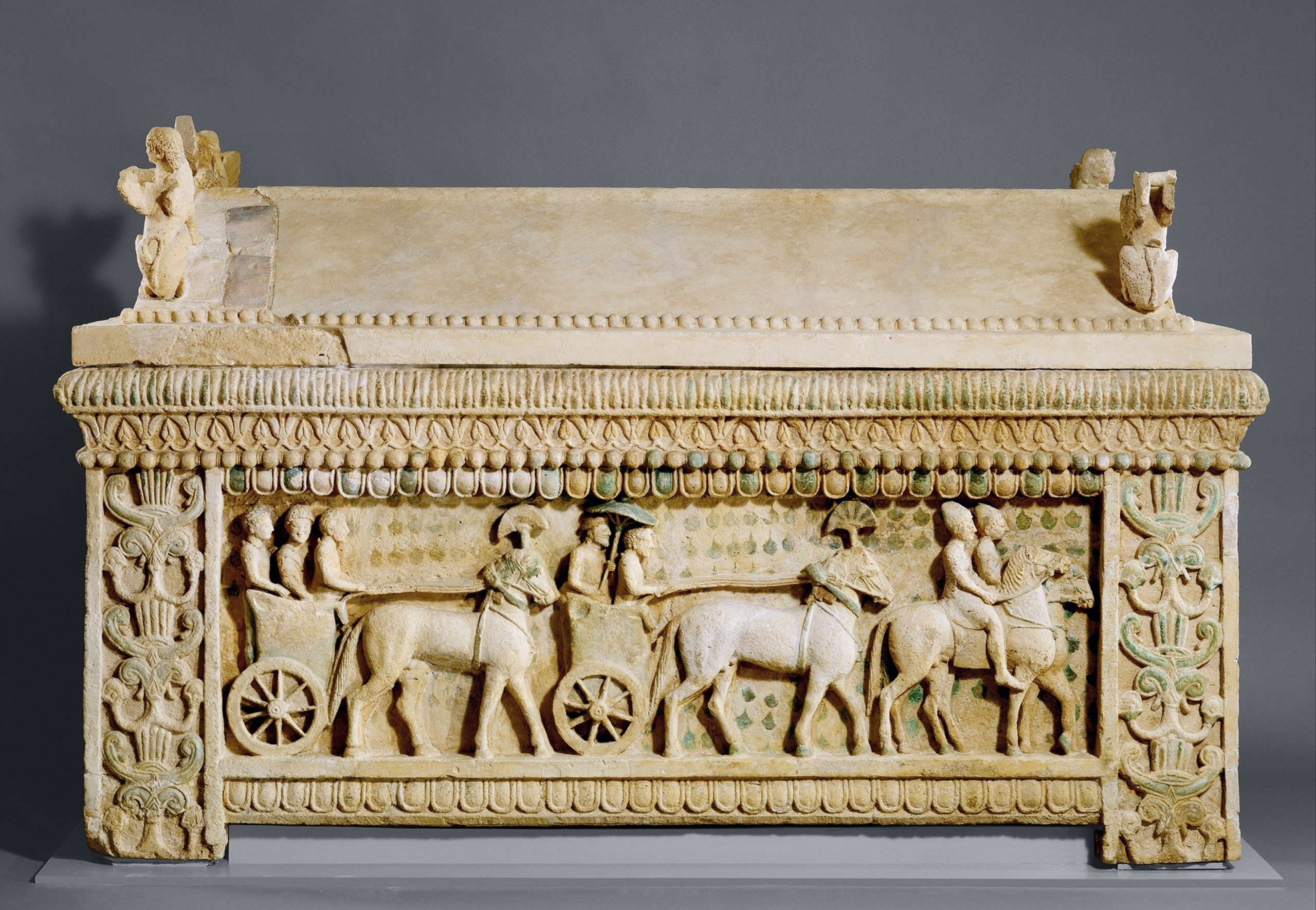 Its carved processions, divine figures, and protective motifs combine Greek, Egyptian, and Near Eastern elements into a single, carefully orchestrated composition. The deceased is not portrayed as a private individual but as a figure of lasting significance, accompanied by symbols of divine favour and elite status. In death, as in life, authority was expressed through material permanence.