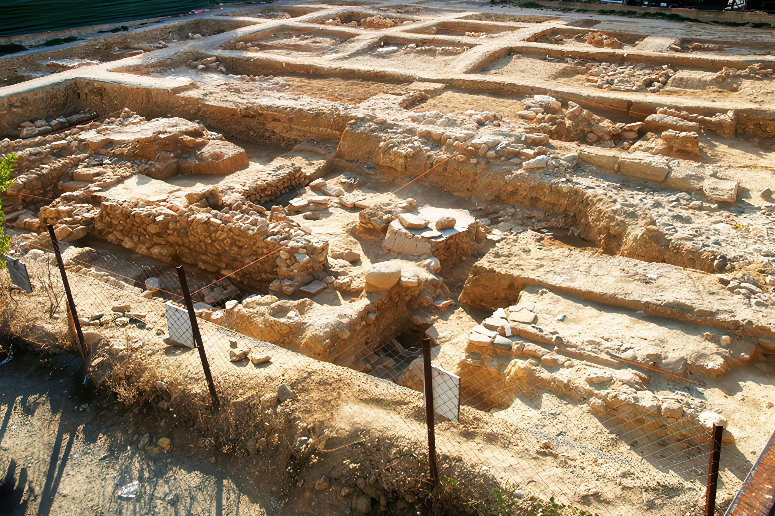 Excavations from 1996 to 2010 revealed an extensive settlement with successive occupation phases. Archaeologists uncovered building complexes, pottery workshops, weaving facilities, and other structures that confirm the existence of a significant Iron Age population. A large olive press found at the site demonstrates agricultural processing activities. The discoveries show continuous occupation from the Bronze Age through the Byzantine period.