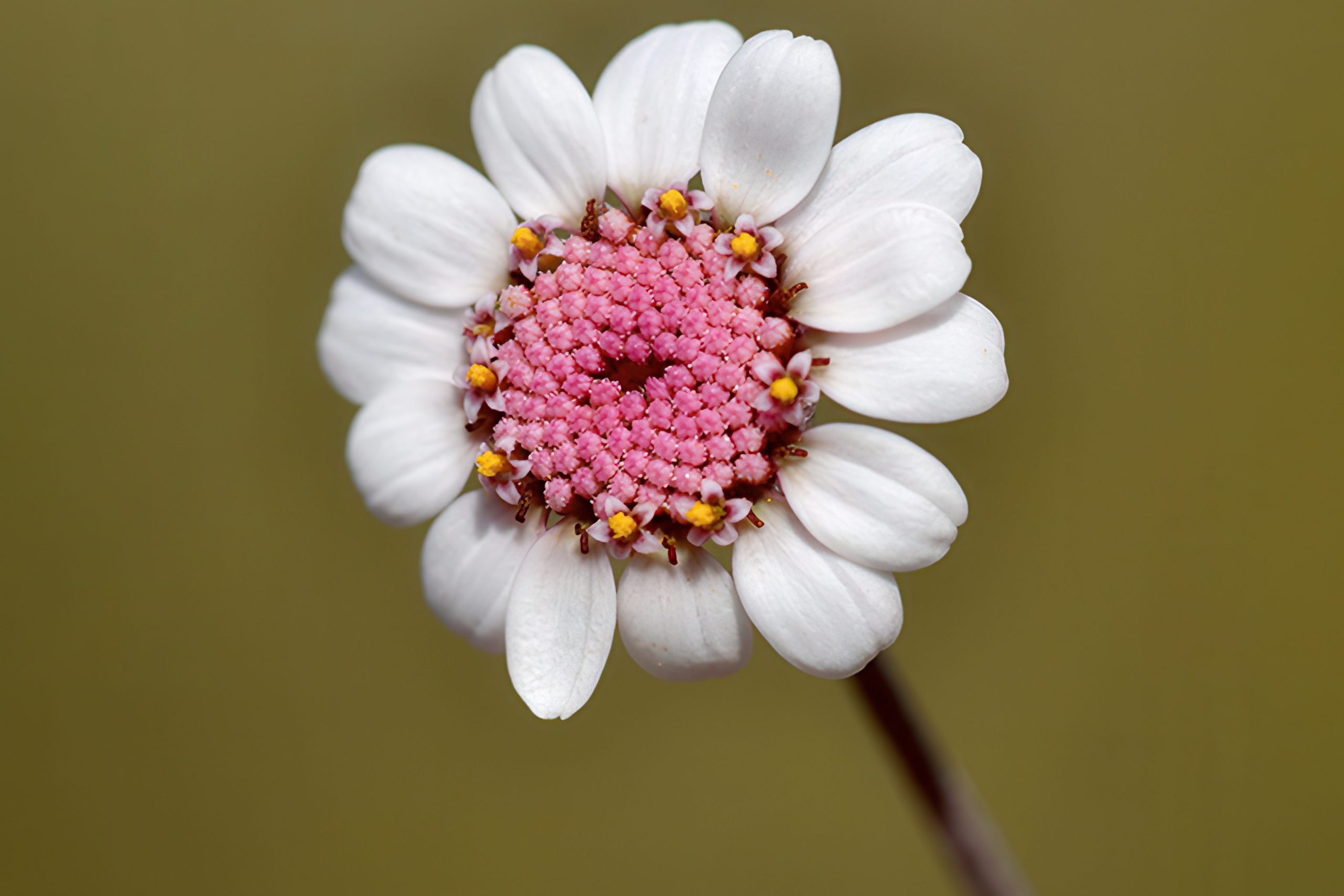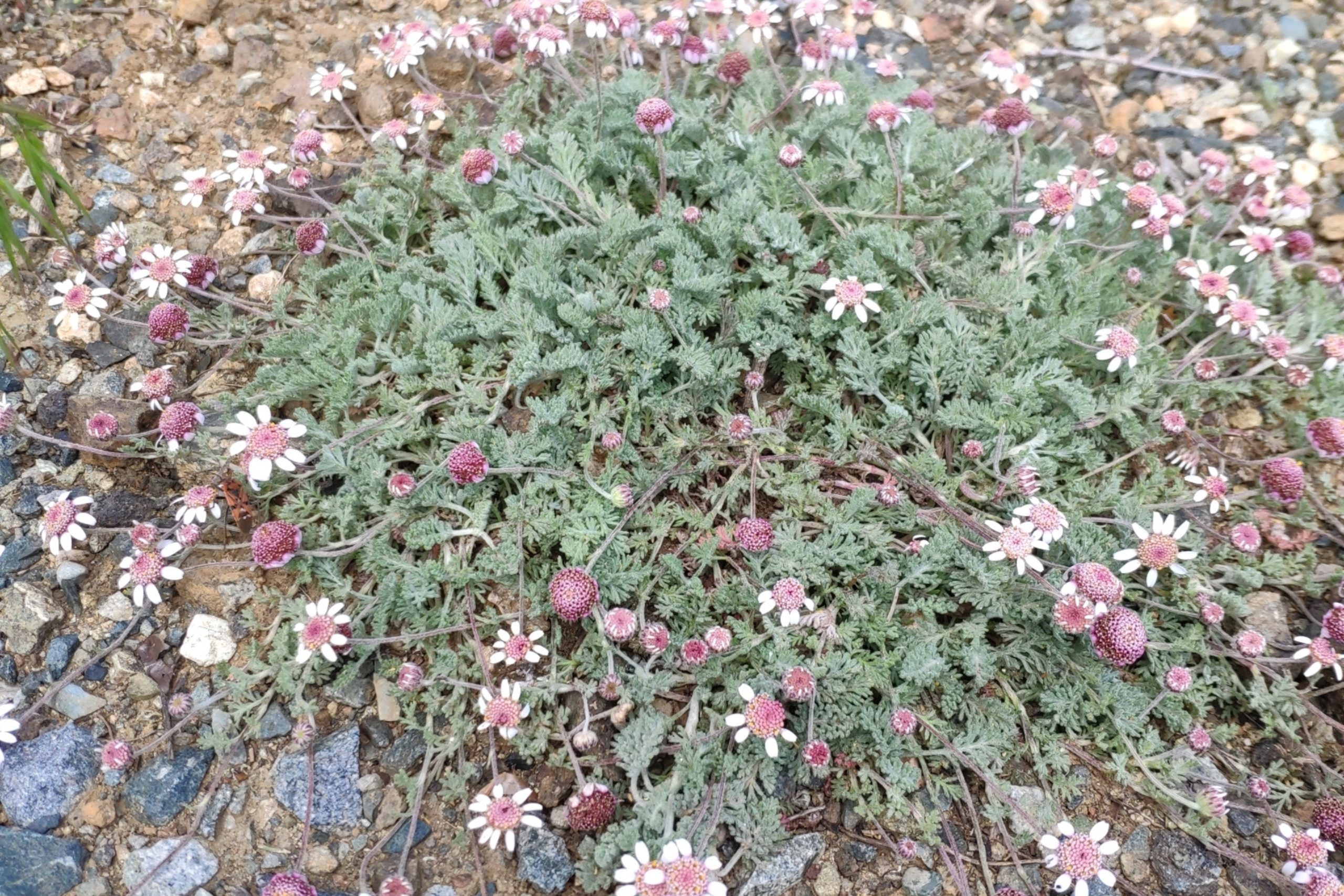 • True to its name, A. tricolor produces disc florets that can be white, pink, or purple – hence “tricolor.” Chemically it stands out too: researchers found it contains totarol, an unusual compound with both cytotoxic and acetylcholinesterase-inhibitory properties – the latter being relevant to Alzheimer’s research – making it a potentially valuable source of pharmacologically active compounds. Analysis of the essential oil from A. tricolor revealed 40 compounds, – a chemical fingerprint unlike most other Anthemis species and one that hadn’t been studied in detail until relatively recently.