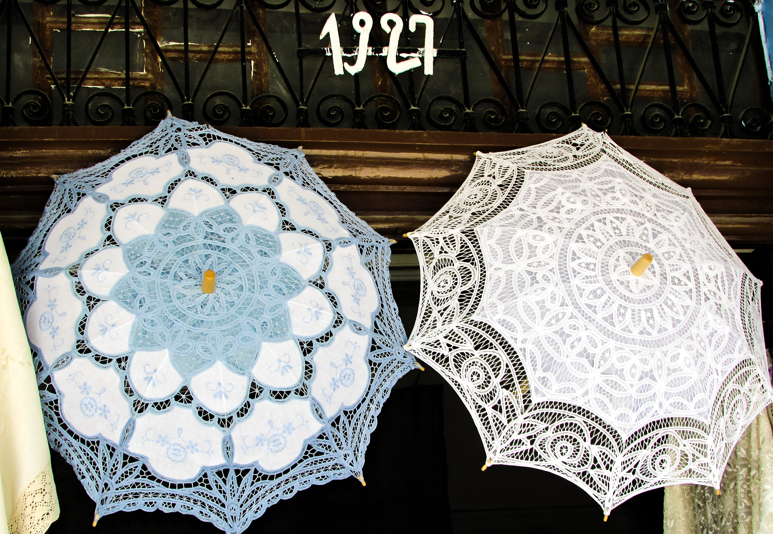 This visibility matters. Lace here is not simply displayed for sale. It is witnessed in the process of being made, slowly and publicly, reinforcing its authenticity and its role in the village’s rhythm. Shops displaying finished pieces line the routes leading toward the Church of the Holy Cross, creating what feels less like a commercial strip and more like a lived-in archive of skill and memory.
