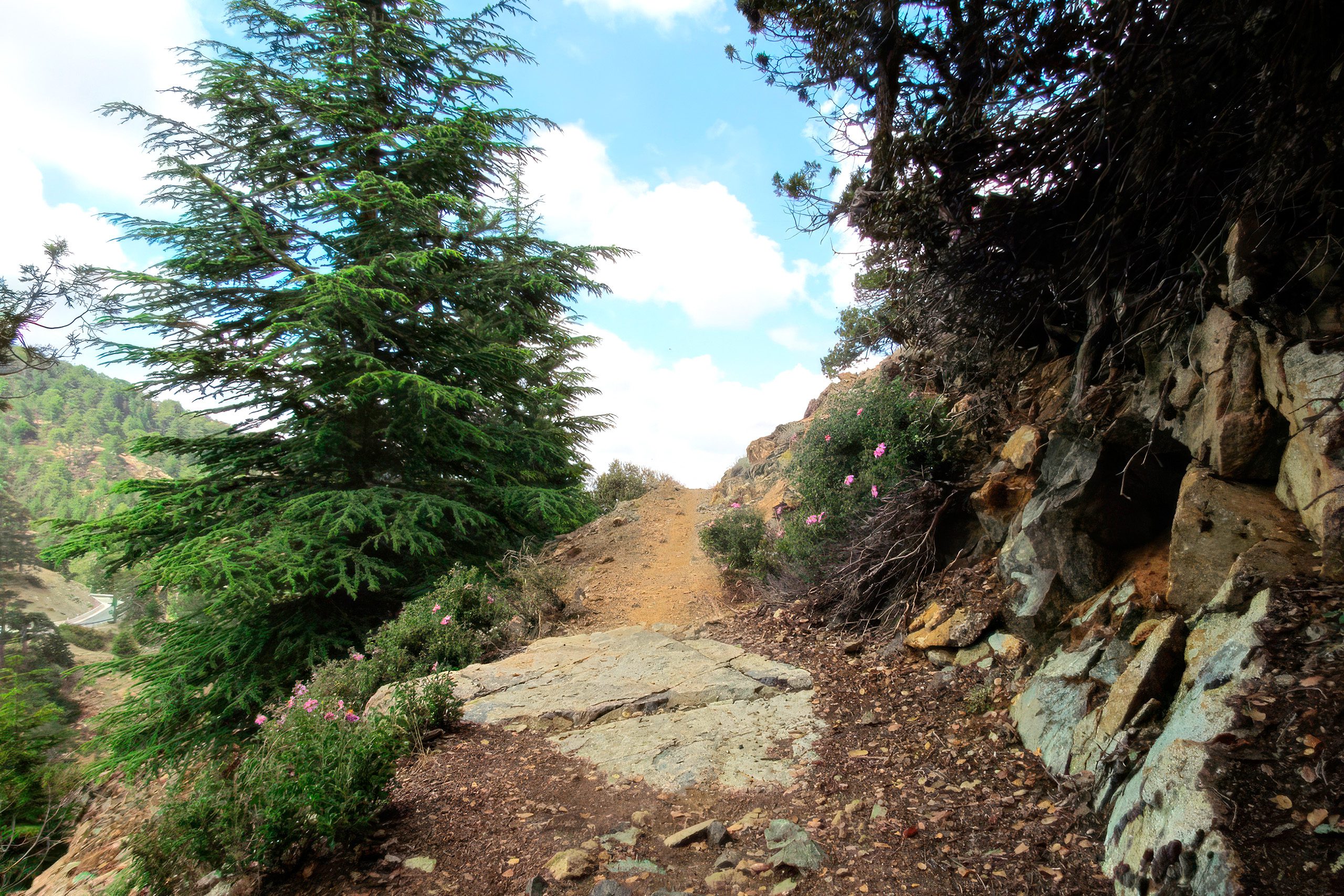 The trail also serves educational purposes, introducing visitors and locals to the unique geology and ecology of the Troodos range.