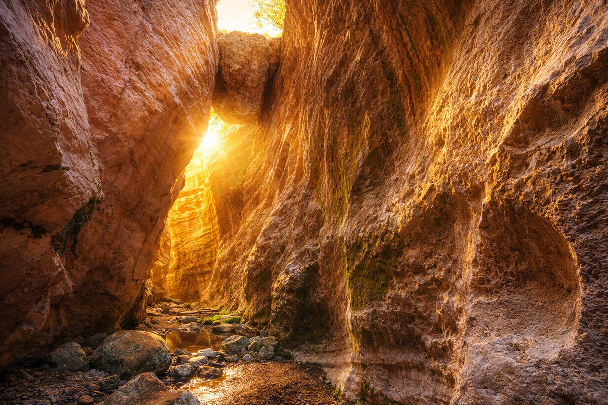 The trail involves rock hopping across the dry riverbed and occasionally scrambling over boulders. Good hiking shoes with ankle support are essential because the rocks can be slippery when wet and uneven. During winter and spring when water flows, visitors may need to wade through shallow pools, so water shoes or sandals are useful.
