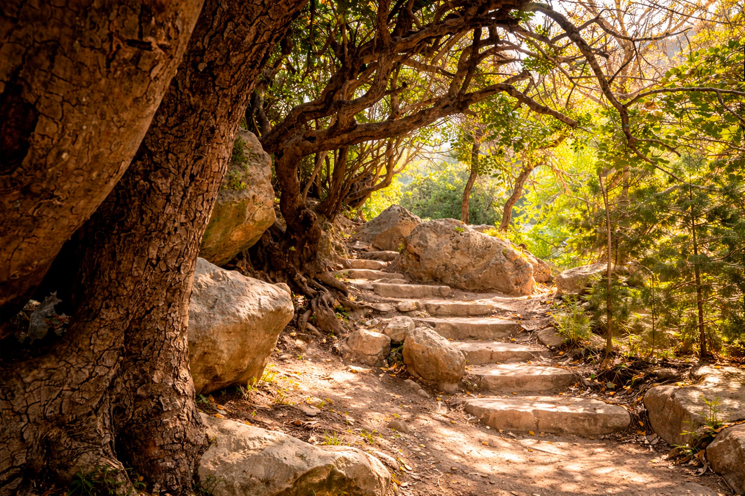 Wild fig trees grow from cracks in the walls and their roots create natural ladders down the rock face. Birds nest in the high alcoves and their calls echo through the canyon. The silence can be profound when no other visitors are present, broken only by the sound of wind through the gorge or the occasional call of a bird.