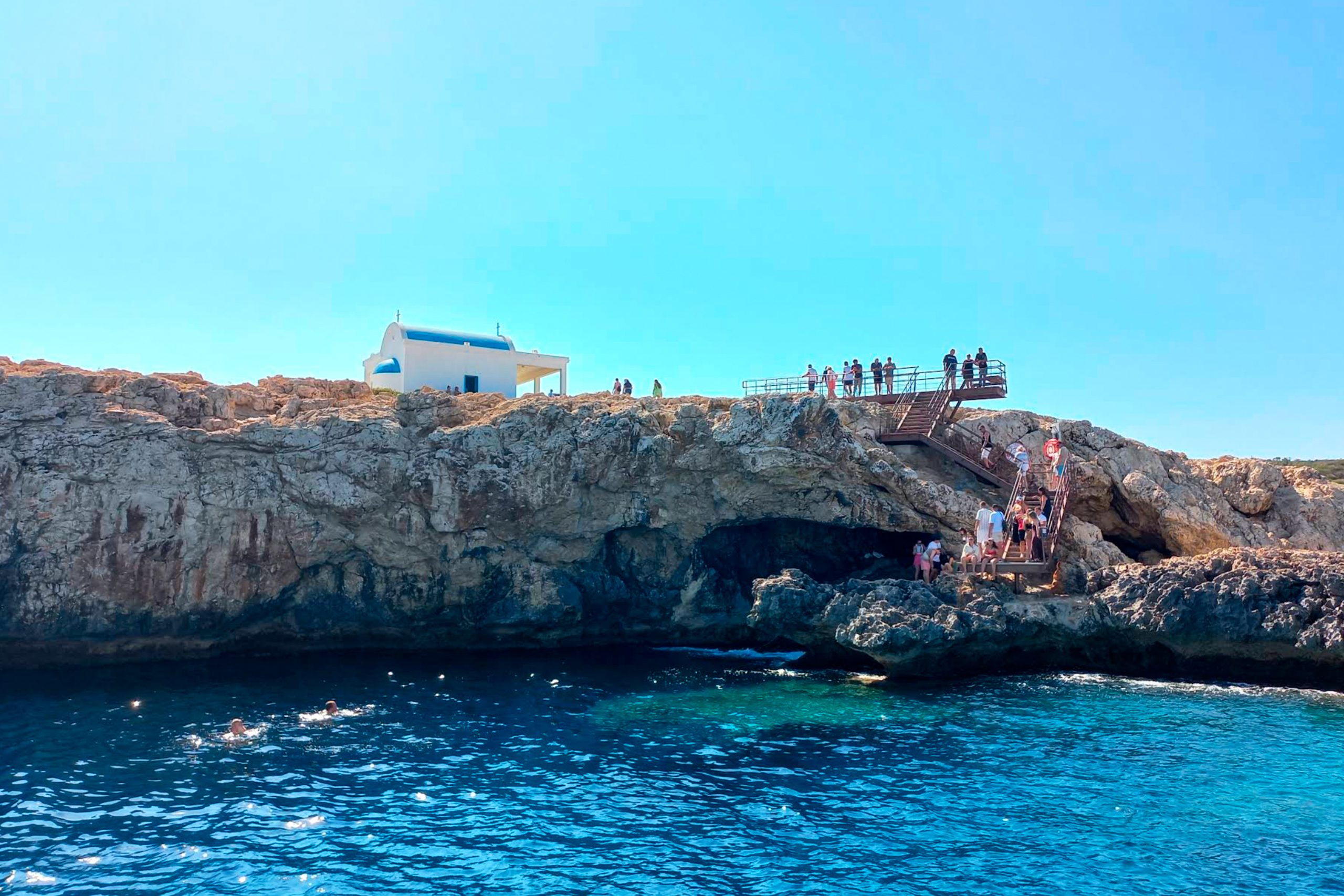Boat tours from Ayia Napa regularly visit the caves as part of coastal cruises. These tours provide views of the caves from the sea and often include swimming stops where passengers can explore cave entrances. The boat perspective shows the full scale of the limestone cliffs better than the view from land.