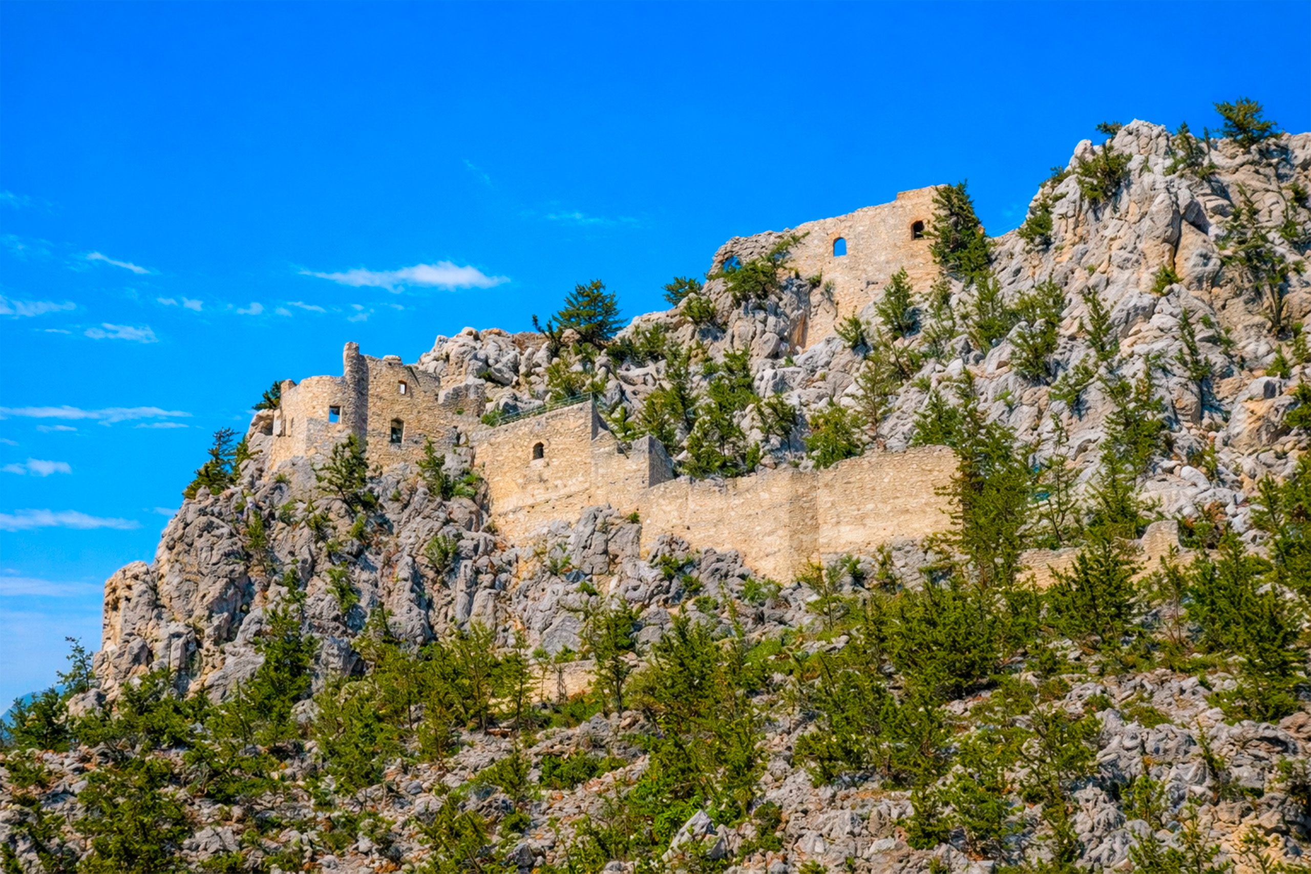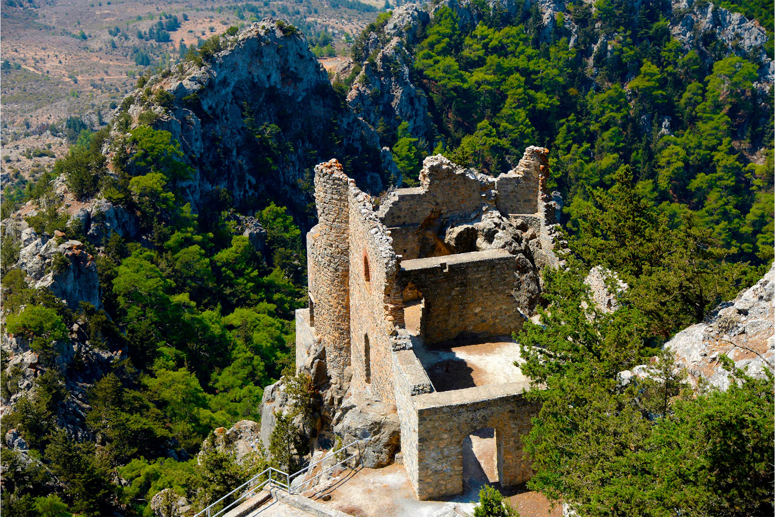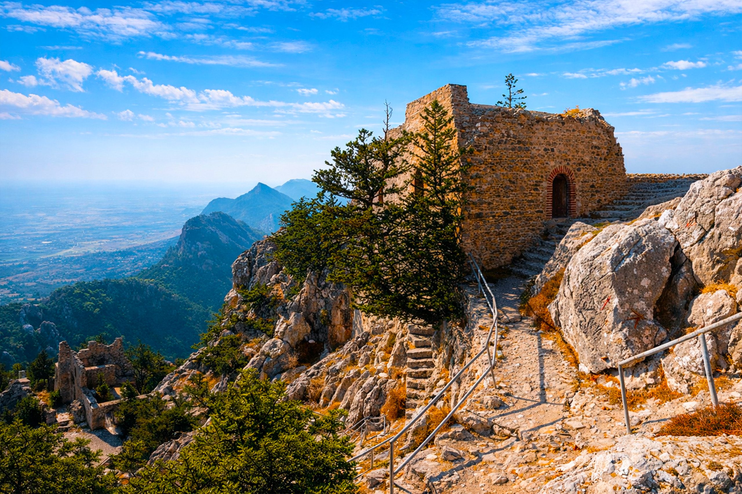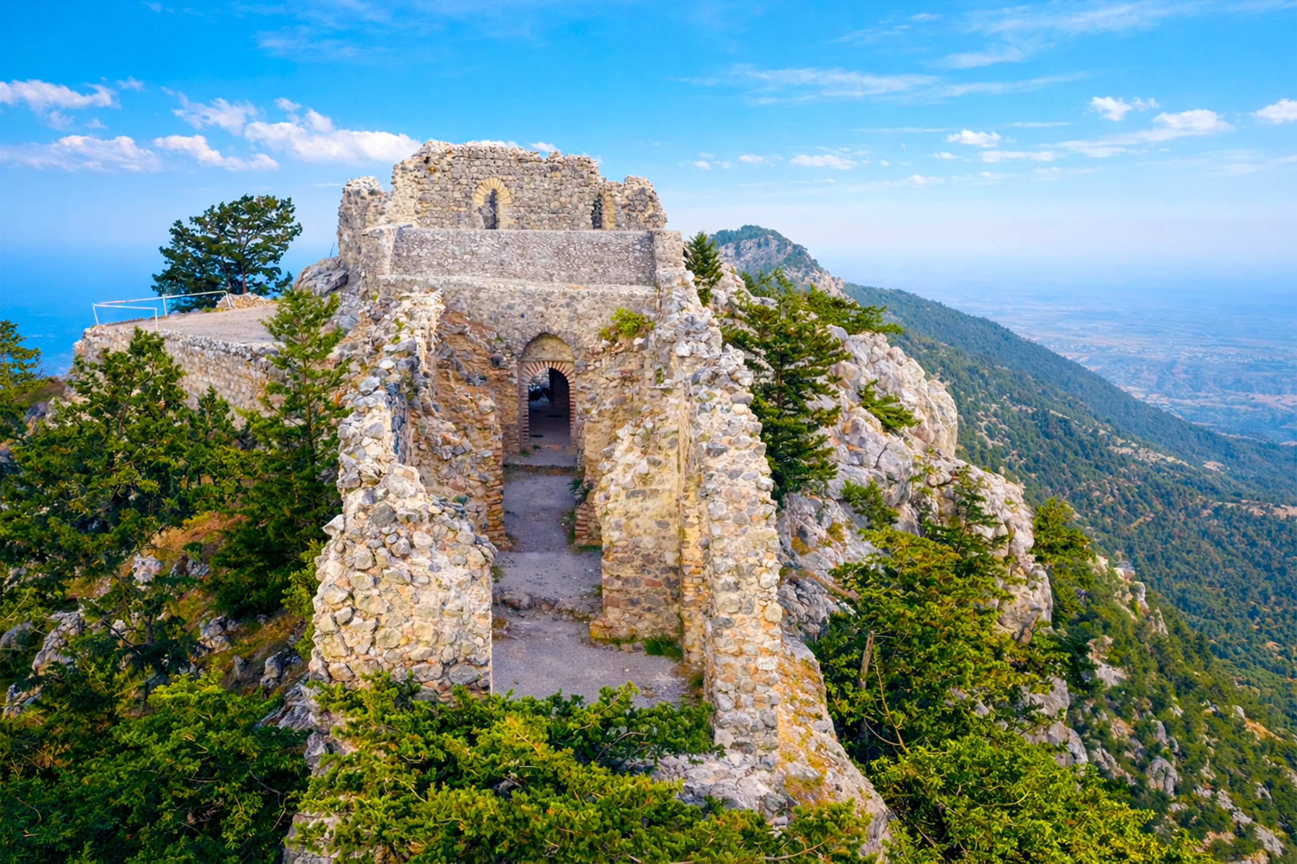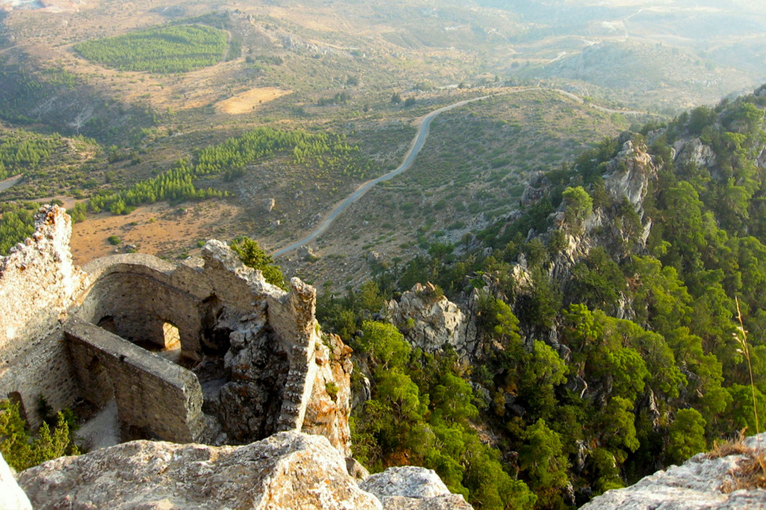The location provides views in every direction. Looking north across the Mediterranean Sea, visitors can see the Turkish coast approximately 65 kilometers away on clear days. To the south, the Mesaoria Plain stretches toward Nicosia. On exceptionally clear days, Famagusta to the east and the Troodos Mountains to the south are visible. The castle overlooks nearly half the island from its rocky peak.