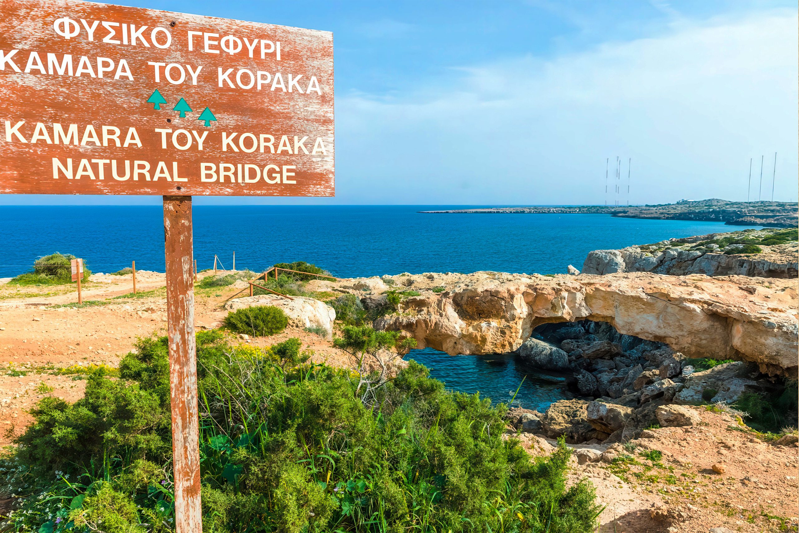 The natural arch sits approximately 4 kilometers from Ayia Napa and roughly the same distance from Protaras. Visitors can reach the site by car, motorcycle, bicycle, or on foot via several hiking trails. Public bus service operates along the coast road, though routes may have limited frequency depending on season.