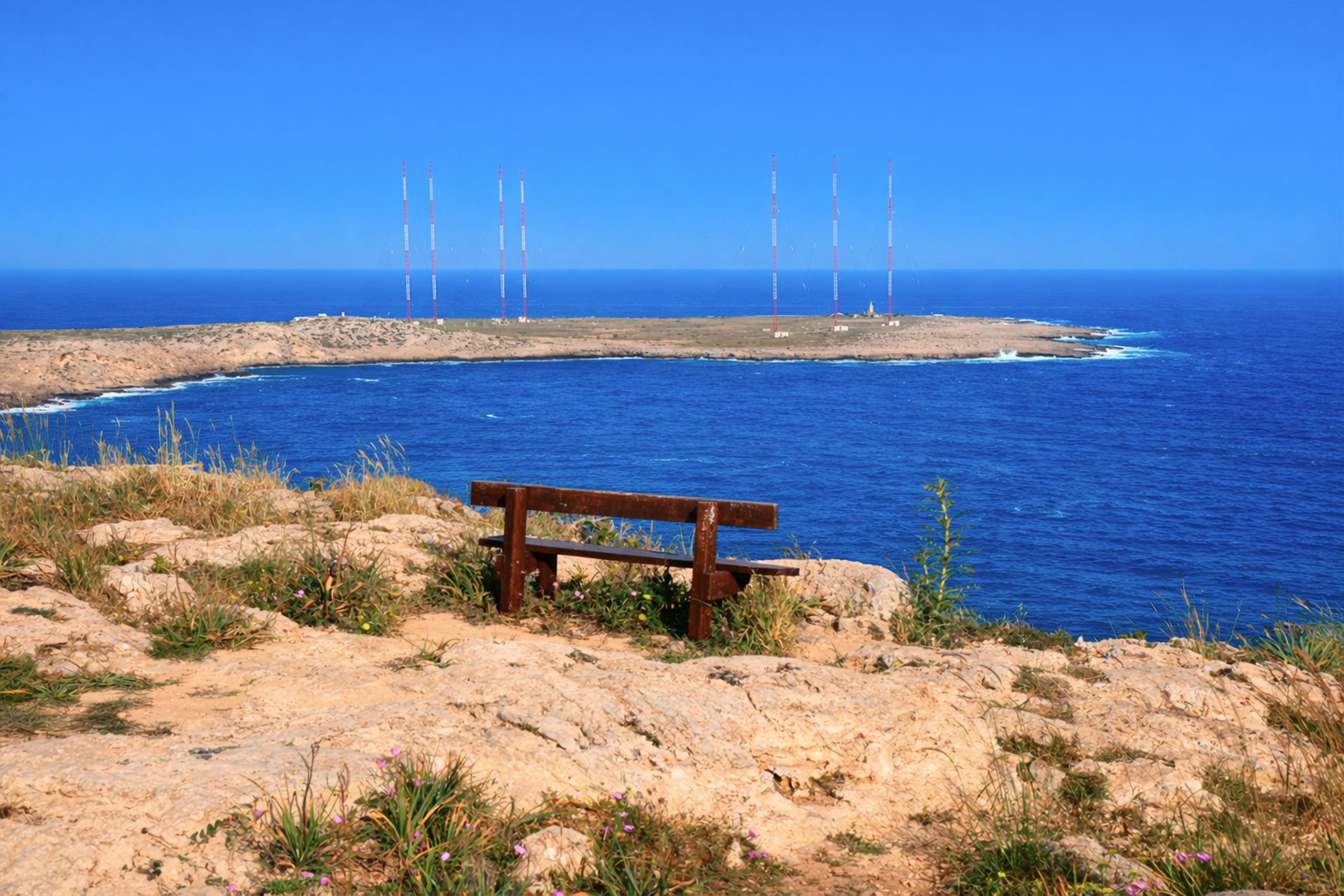 From the highest peak at Cape Greco, at 28 meters altitude, visitors can see remarkable distances across the island. The viewpoint provides 360-degree panoramas that take in both the coastline and inland landscapes.