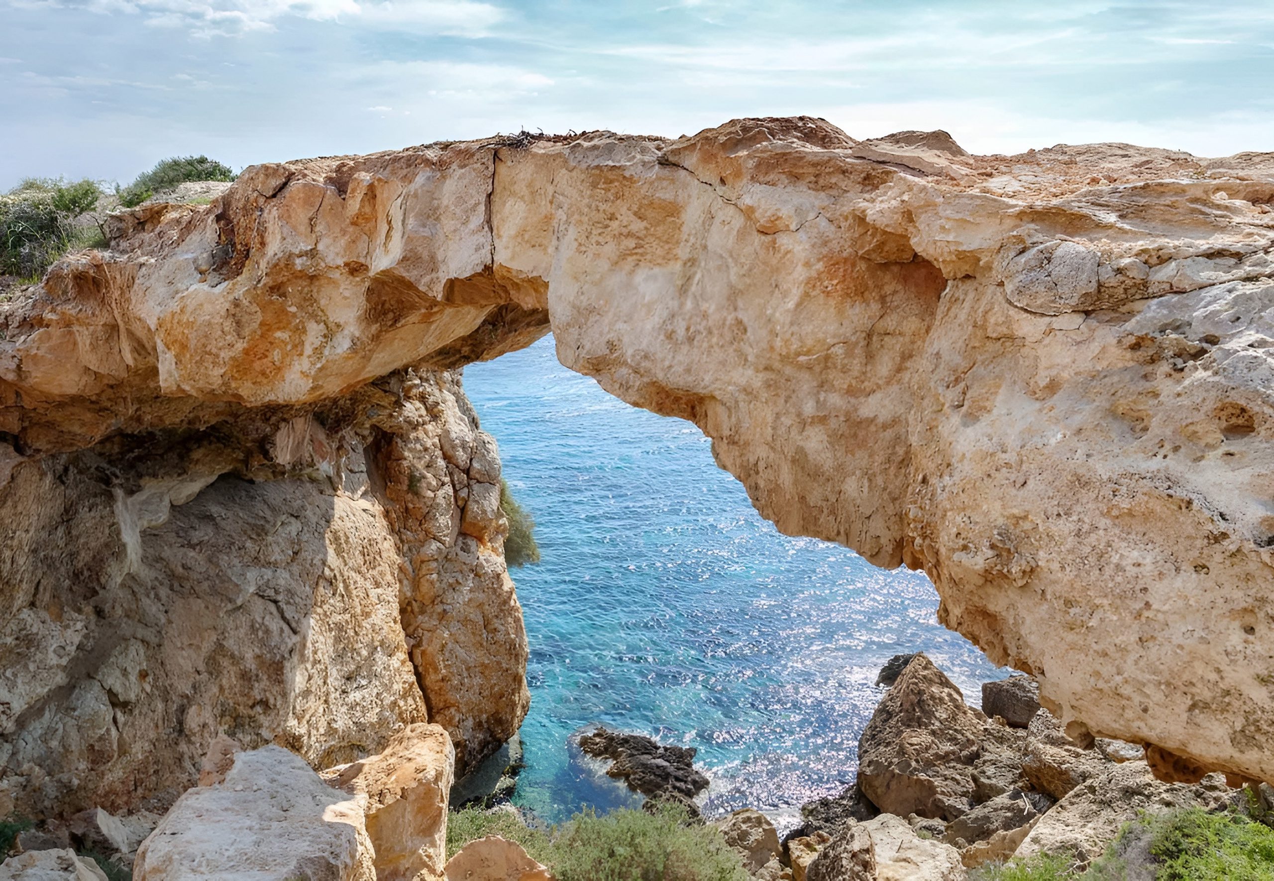 The viewpoint serves as an excellent starting point for exploring the wider Cape Greco area. The Kamara tou Koraka, also known as the Arch of Korakas or Love Bridge, stands as one of Cyprus’s most impressive natural bridges. This formation spans 50 feet in height and measures 23 feet wide, though it has shown signs of gradual erosion in recent years. Local legend states that couples who cross the bridge together will have eternal love.