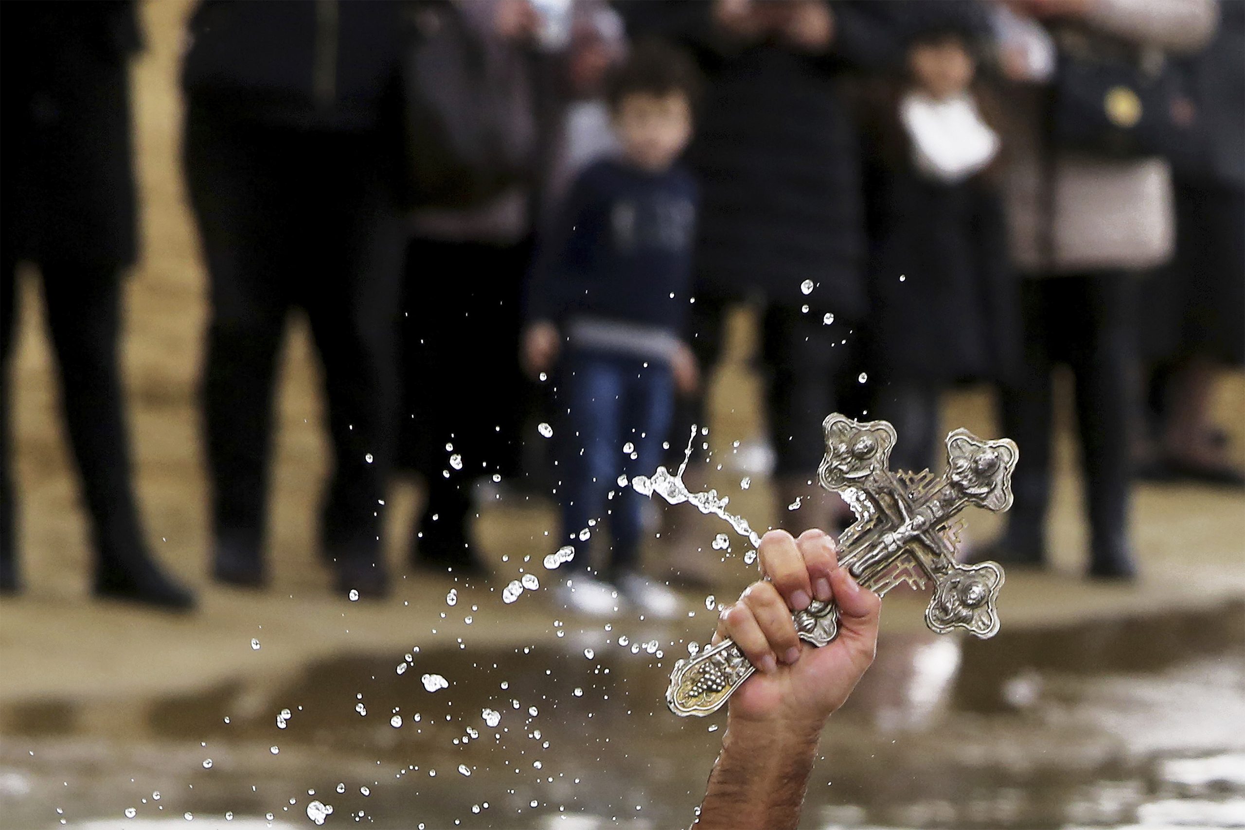 After church services, priests visit homes to perform agiasmos, sprinkling holy water in each room to bless inhabitants and expel any remaining Kalikantzari. In coastal towns and cities, priests lead processions to harbors, seas, rivers, or lakes where they throw a cross into the water. Young men and occasionally brave women dive into the cold winter water, competing to retrieve the cross. The successful diver receives blessings for the entire year and often a small monetary prize.