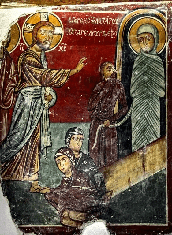 Figures are rendered with expressive faces and carefully modeled forms, reflecting stylistic developments that favored greater emotional engagement. Drapery folds are outlined with rhythmic lines, and colors are applied with subtle shading to create depth. The style balances spiritual solemnity with human warmth, allowing worshippers to connect visually and emotionally with sacred figures. These frescoes demonstrate that even small rural churches could achieve high artistic standards, linking local practice to broader Byzantine aesthetic currents.