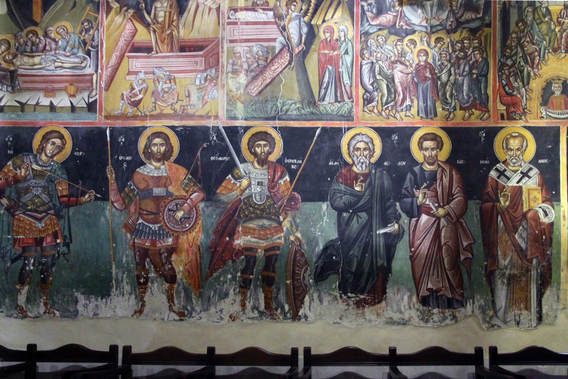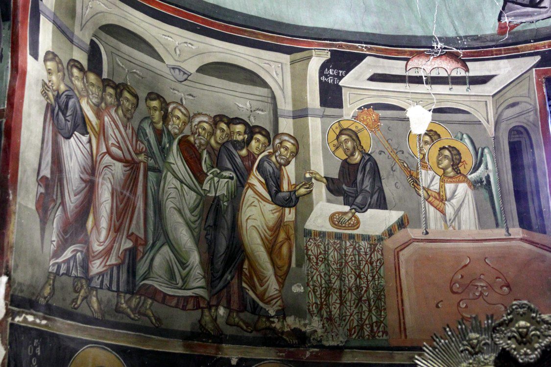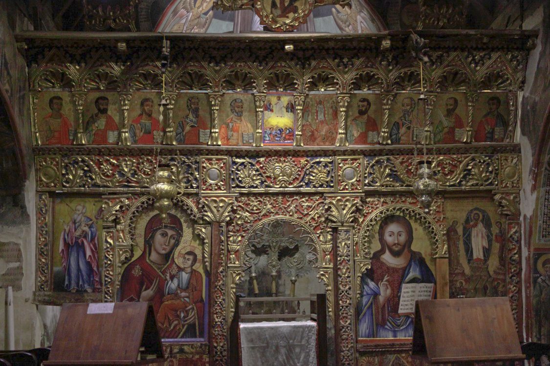 Biblical scenes unfold hierarchically: the apse holds the Transfiguration with Christ in radiant white, flanked by prophets, while walls show apostles’ lives and judgment motifs in the narthex. The style shows post-Byzantine influences with emotional faces and fluid drapery, but Cypriot rustic touches add warmer, more accessible figures, making theology approachable for rural audiences. A small iconostasis separates the nave from the altar, with carved wood panels from the 16th century adding floral motifs amid crosses. The overall design fuses modesty with symbolism, where architecture supports art in conveying faith’s messages.