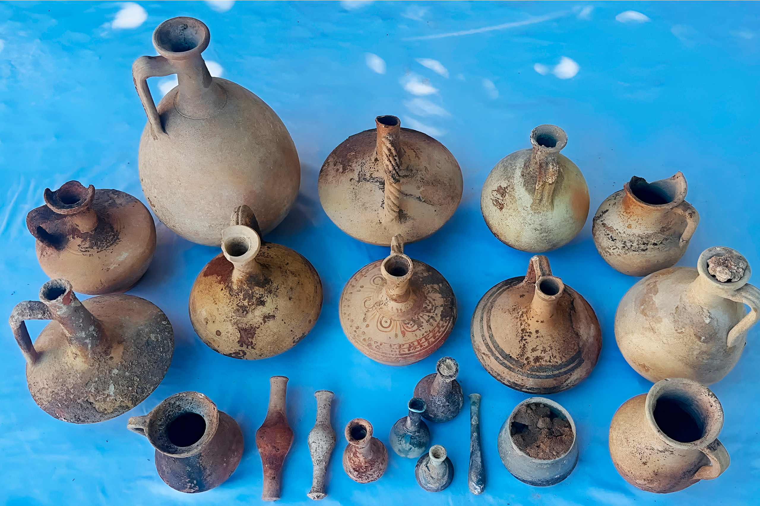By the 7th century BCE, Cyprus developed its own biconical amphora with a pointed base and raised handles. This distinctly Cypriot type accommodated trade of both oil and wine throughout the eastern Mediterranean. Ship cargo evidence reveals the scale of this commerce. The Ulu Burun shipwreck off Turkey’s southwestern coast carried over 10 tons of Cypriot goods when it sank in the late 14th century BCE. A 1999 shipwreck discovery dating to 2300 BCE held over 2,500 amphoras, demonstrating wine was being traded at least that early.