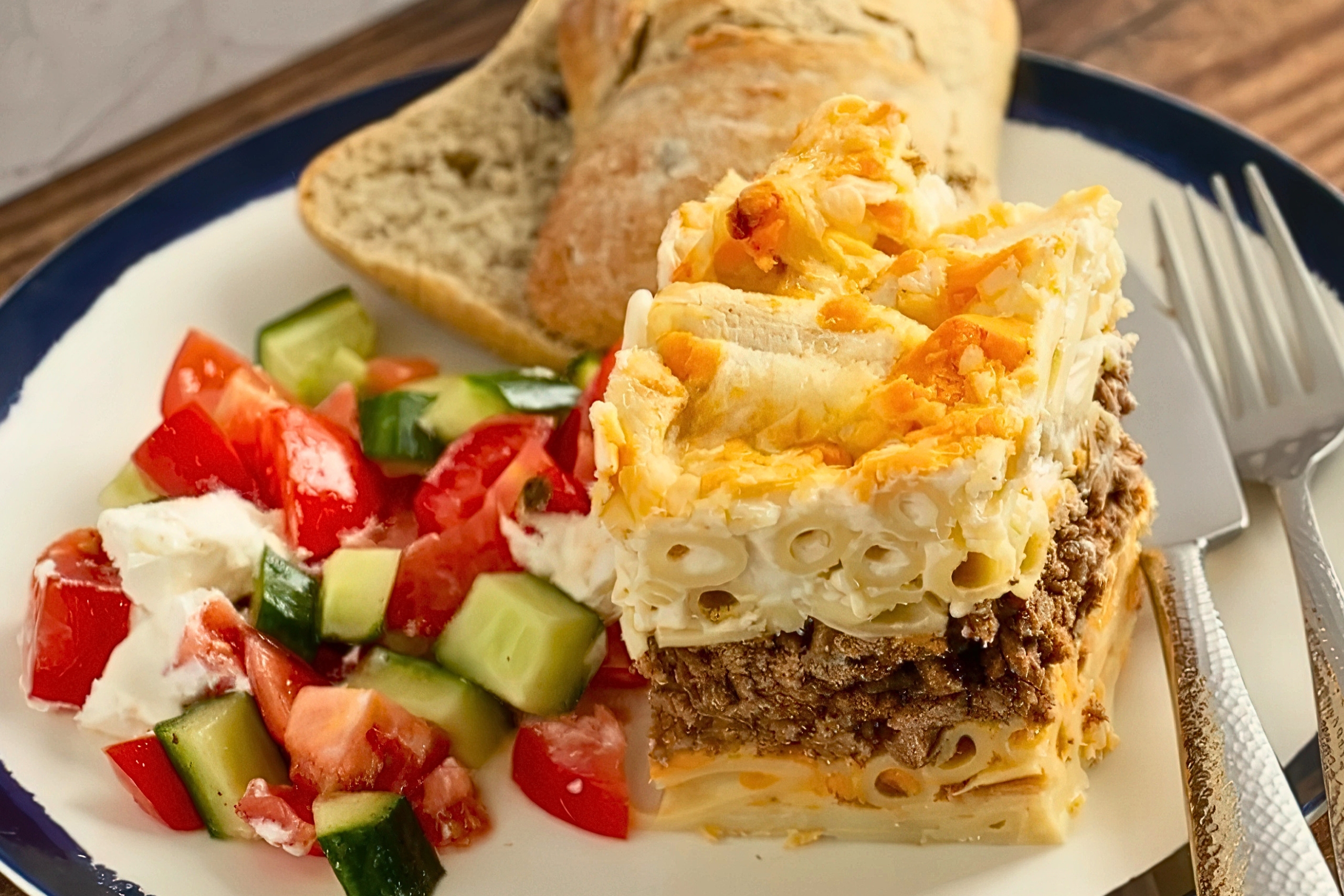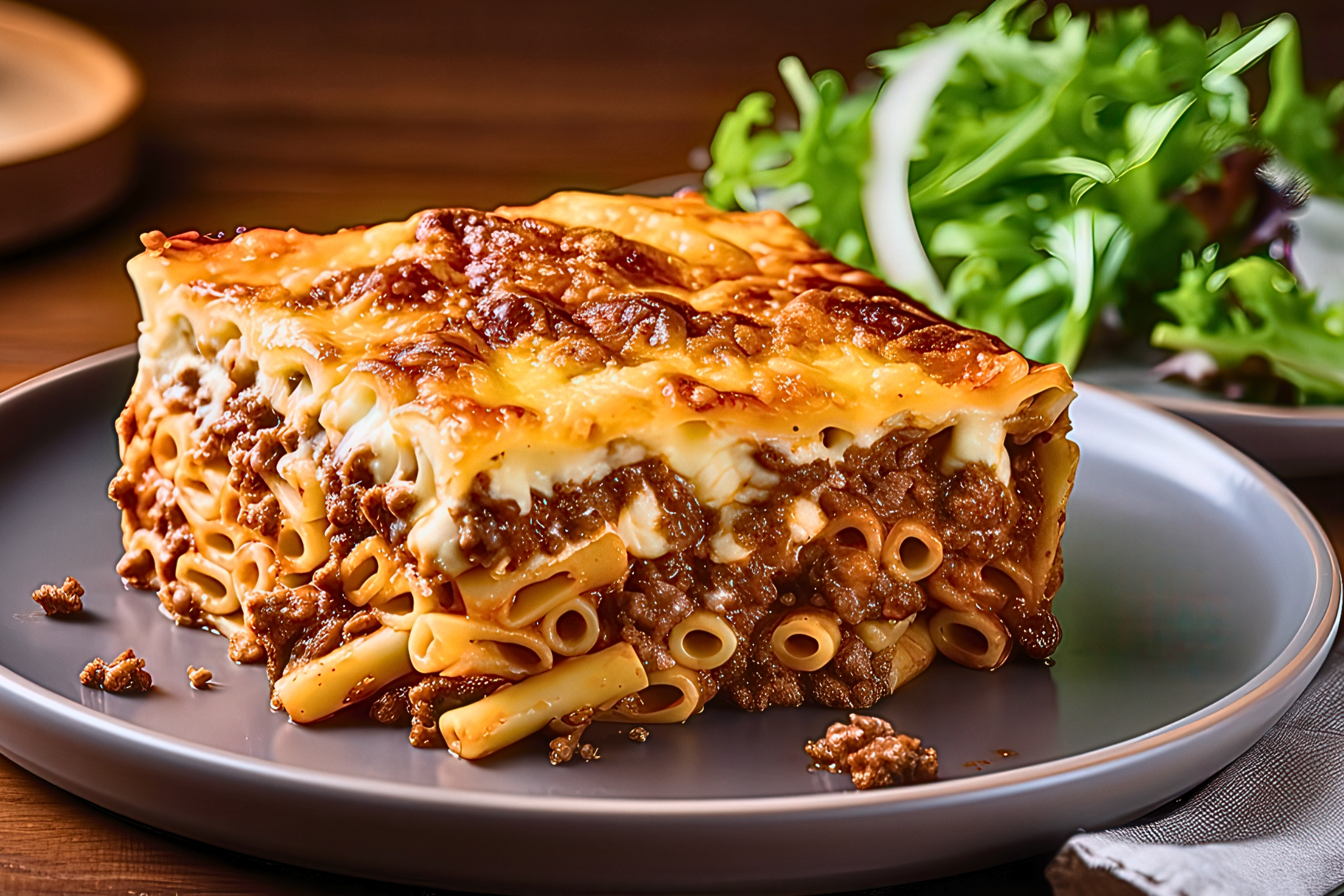 The dish evolved from Italian pasta bakes that reached Cyprus through Mediterranean trade routes and centuries of cultural exchange. The Italian word pasticcio itself comes from Latin pastīcium, which means pie.