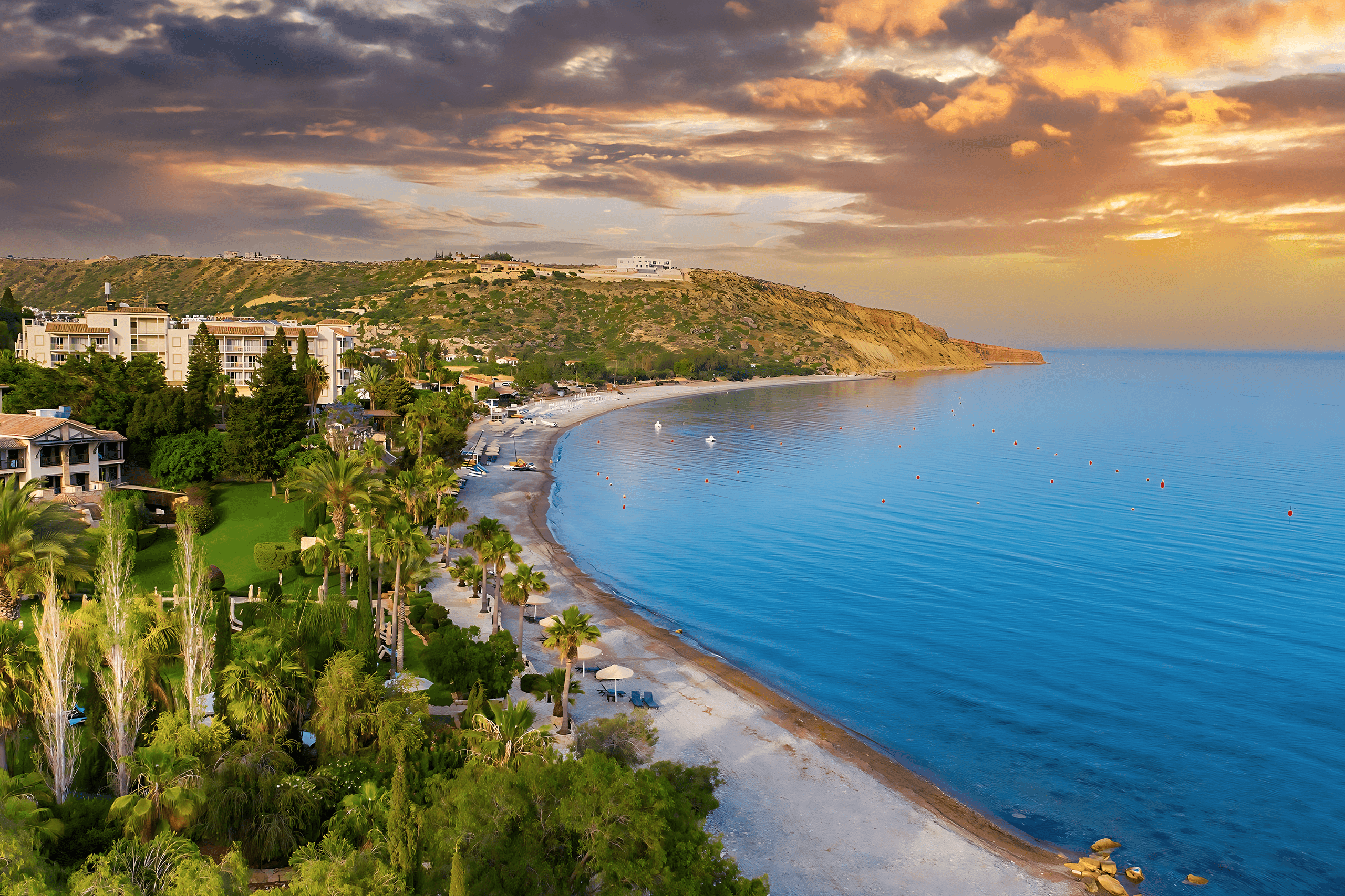 The beach sits close to several attractions including the Paphos Archaeological Park and the Tombs of the Kings, making it a great base for exploring the region. Controlled development of the area means the resort has maintained most of its charm despite popularity with tourists.