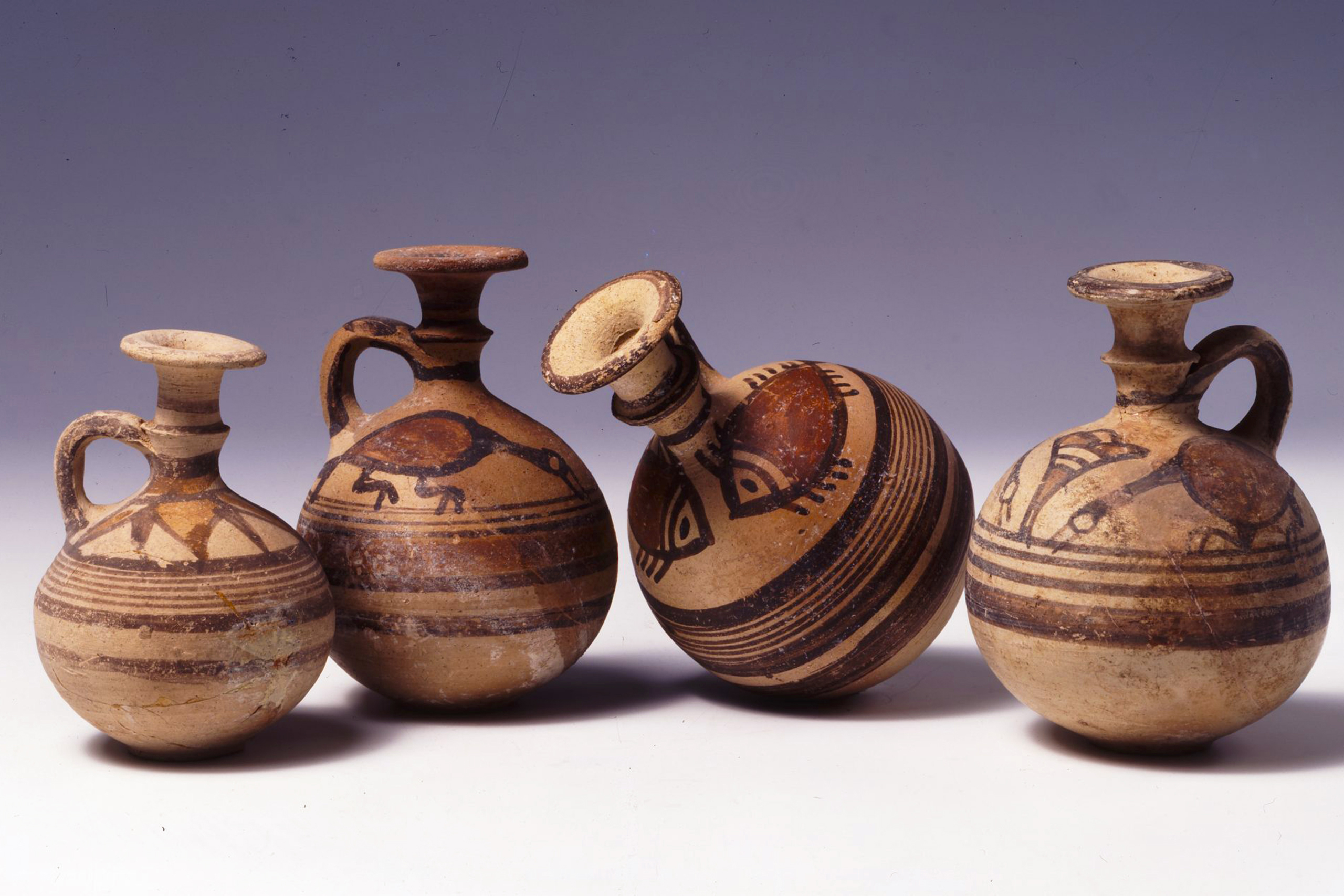 Cypriot pottery stands out for several distinctive features. The clay itself comes from the island’s red soil, which gives finished pieces their characteristic warm coloring. Ancient potters created an impressive variety of forms. Jugs were the most common vessels, produced in all sizes from tiny juglets under 10 centimeters tall to massive containers reaching half a meter. These jugs served practical purposes but often featured elaborate spouts and decorative elements.