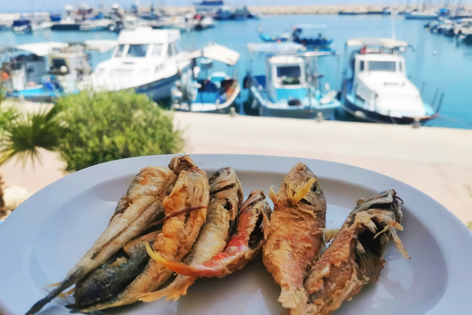 Food preparation remains deliberately simple. Fish is grilled over charcoal, lightly fried, or served as part of a traditional meze, accompanied by lemon, olive oil, herbs, and bread. This approach prioritizes freshness and local produce over elaborate techniques, reflecting the practical culinary traditions of coastal communities.