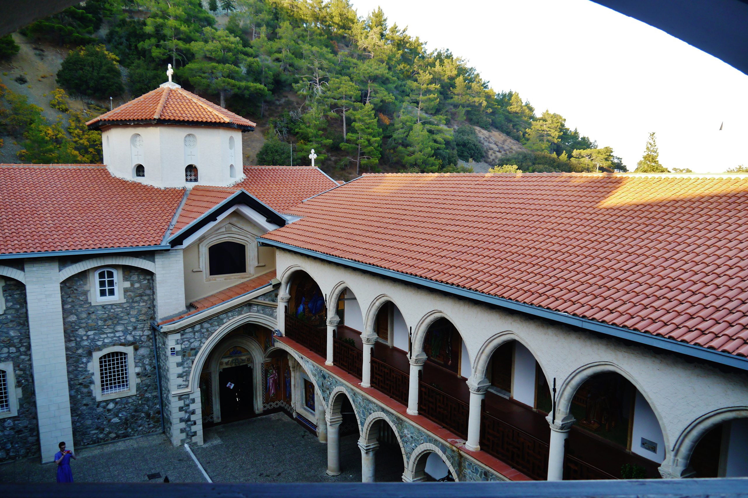 The Troodos Mountains contain some of Cyprus’s most important monastic communities. The Kykkos Monastery stands at an elevation of 1,318 meters on the northwest face of Mount Olympus. Founded in the late eleventh century by Byzantine Emperor Alexios I Komnenos, it houses one of the most revered icons in the Orthodox world. The monastery possesses an icon of the Virgin Mary that tradition attributes to Saint Luke the Evangelist. According to the story, Luke painted this icon during the Virgin’s lifetime, and she blessed it with her own hands.