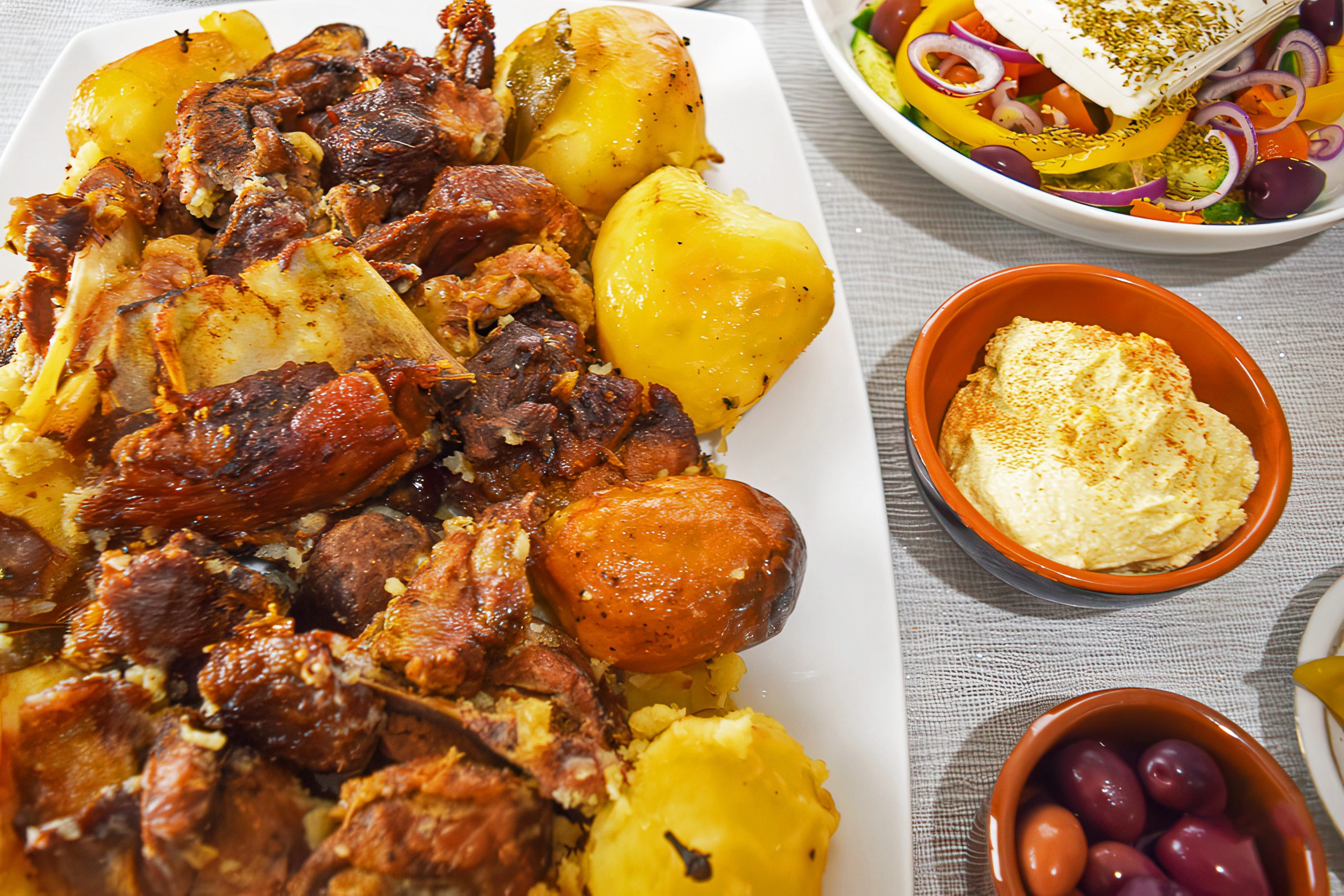 As the lamb releases fat and juices, the potatoes absorb them completely. The result is a texture somewhere between roasted and mashed, soft yet structured, rich without heaviness. For many Cypriots, these potatoes are as essential as the meat itself.