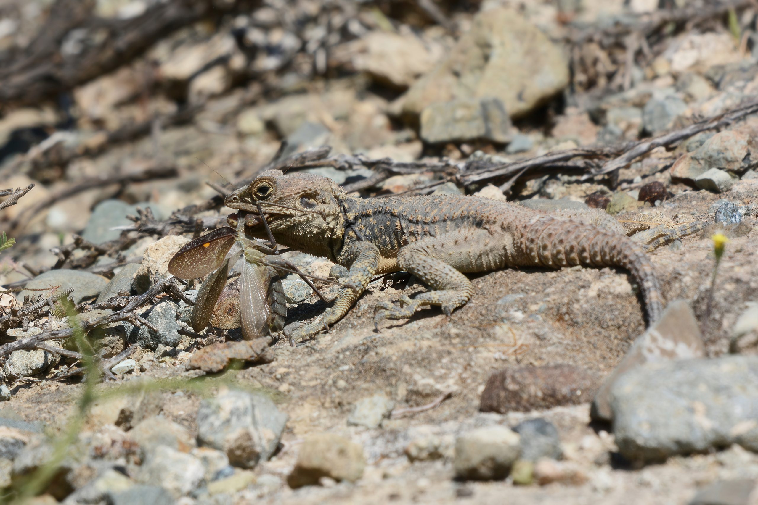 What sets the kourkoutas apart is its rugged look: a flattened, triangular head, spiny scales like tiny thorns along its back and sides, and a tail that’s often shorter than its body. Its dark gray back is dotted with yellowish-black spots and those signature ochre-white star shapes along the spine – earning it the “starred agama” nickname. The belly is a pale, creamy white, and males can flash brighter colors during mating season. It’s built for agility, with strong limbs for climbing and a body that can inflate to wedge into cracks for safety. In broader lizard taxonomy, it’s part of the Agamidae family, kin to bearded dragons and sailfin lizards, but this Cypriot gem has slimmed down for island survival.