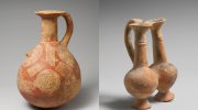 One quirky detail: some jugs have “horned” handles resembling bull horns, symbolizing strength, found in 30% of Enkomi tombs. A legend claims Kinyras, mythical king, used such pots for divine wine, tying to Homer’s Iliad. UNESCO notes similarity to Anatolian wares, traded via ships like the Uluburun wreck (1300 BC) carrying Cypriot pottery. Famous “Red Polished IV” phase pieces from Bellapais include a “scenic” bowl with incised hunters, like early comics. And in folklore, broken pots’ shards warded evil, a practice from ancient burials.