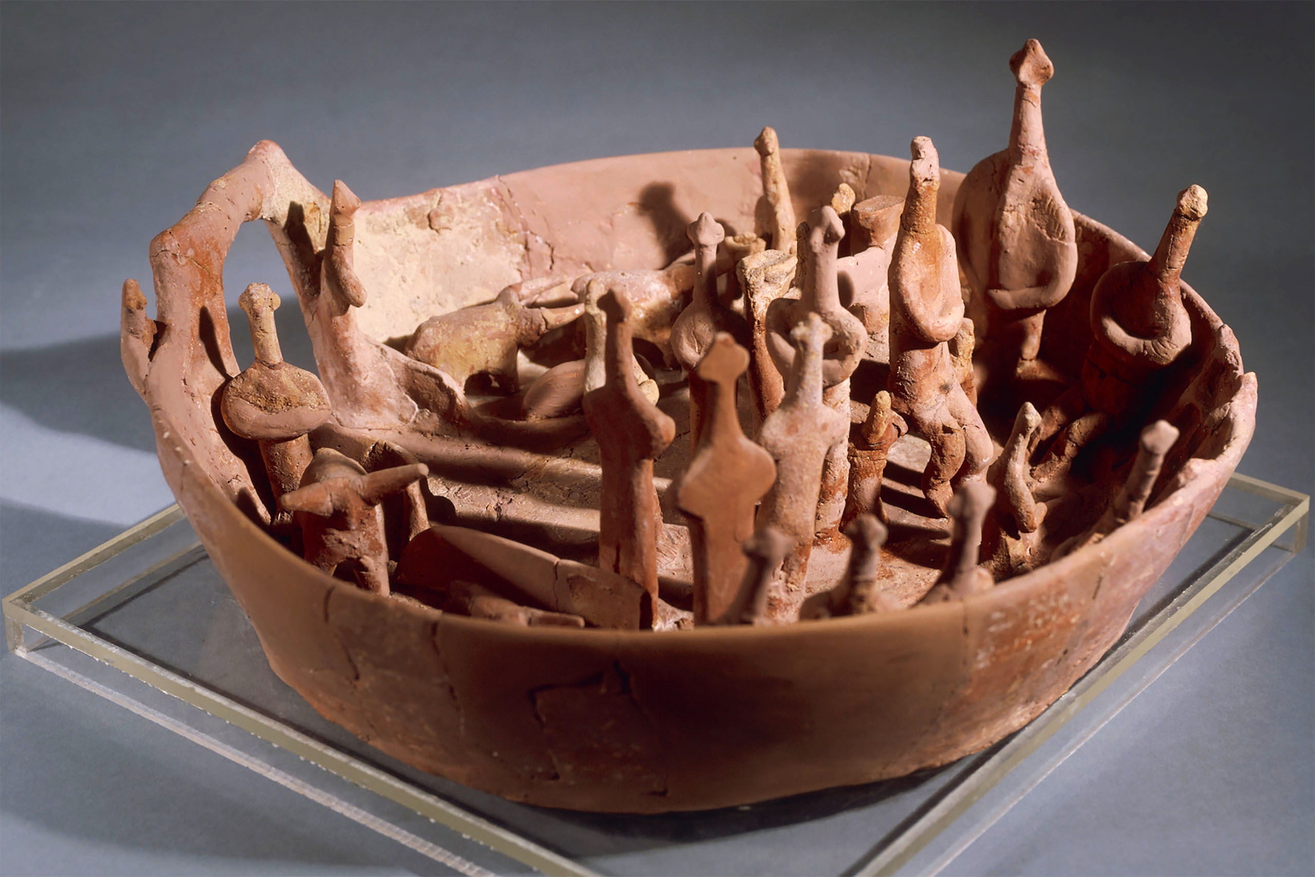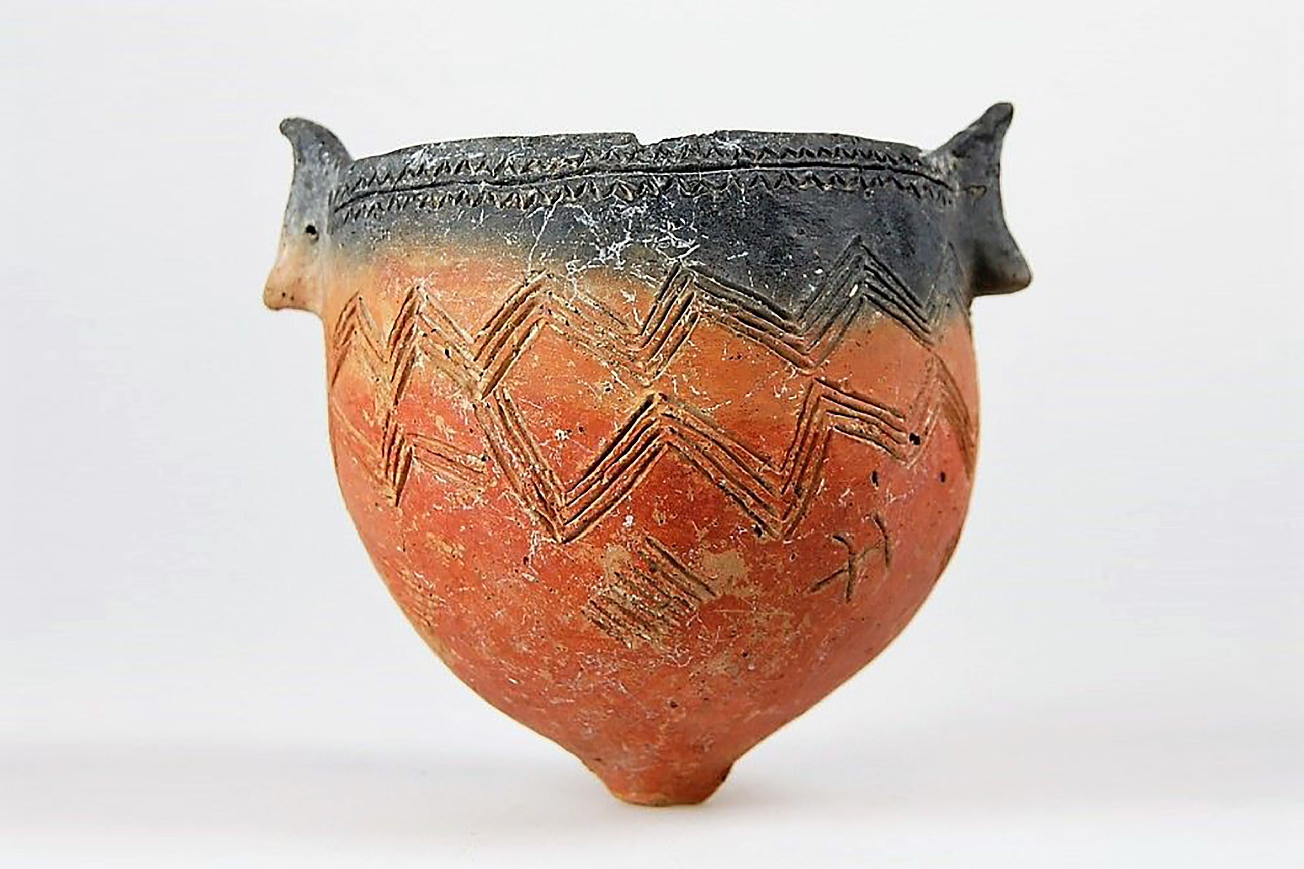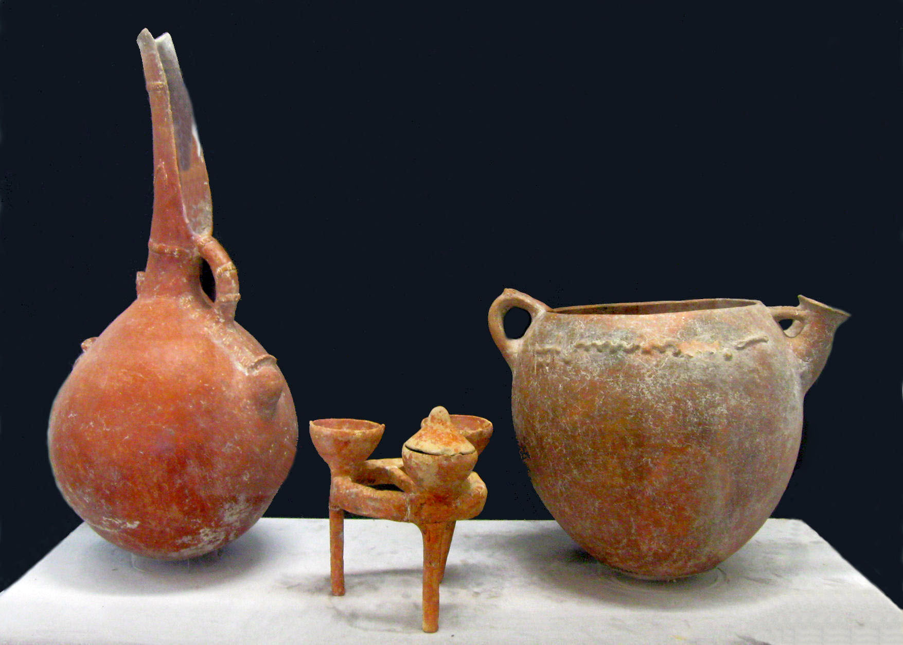 Types vary: bowls for eating, jugs for pouring liquids, and figurines like “plank idols” with flat bodies and incised eyes, possibly ritual objects for ancestor veneration. Colors ranged from orange-red to deep crimson, depending on firing, with white paste fills adding contrast in 20% of samples. Sizes ranged from small cups (10 cm) to large storage jars (50 cm), suited to household or funerary use. This style’s uniformity across Cyprus suggests shared cultural practices, with regional variations – coastal pieces more polished for trade, mountain ones rougher for utility.