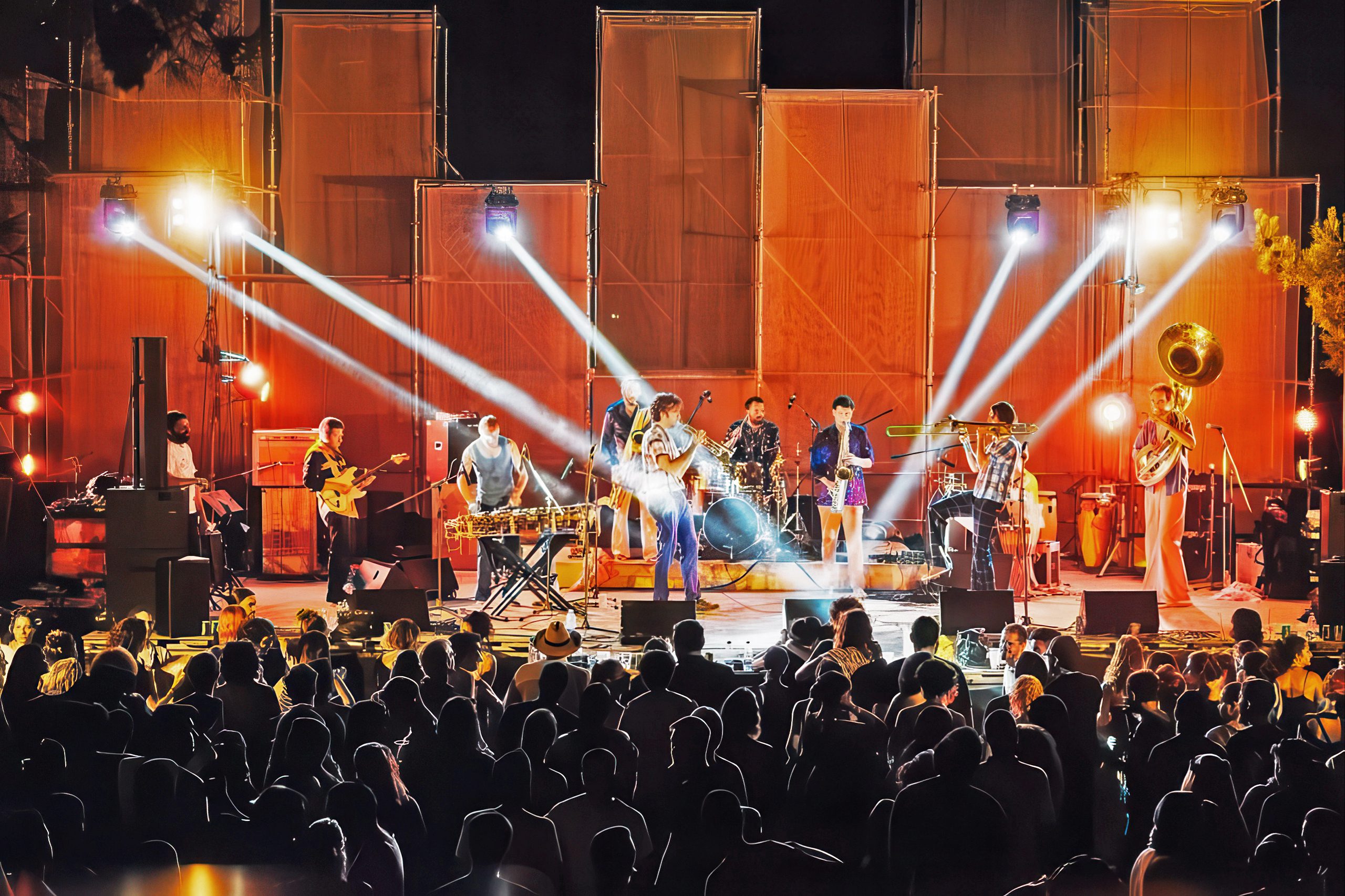 Traditional instruments such as the bouzouki, oud, santouri, and shepherd’s flute often appear alongside modern setups. Folk dances emerge spontaneously in response to rhythm, and performers adapt their sets to the energy of the crowd rather than following fixed programmes.