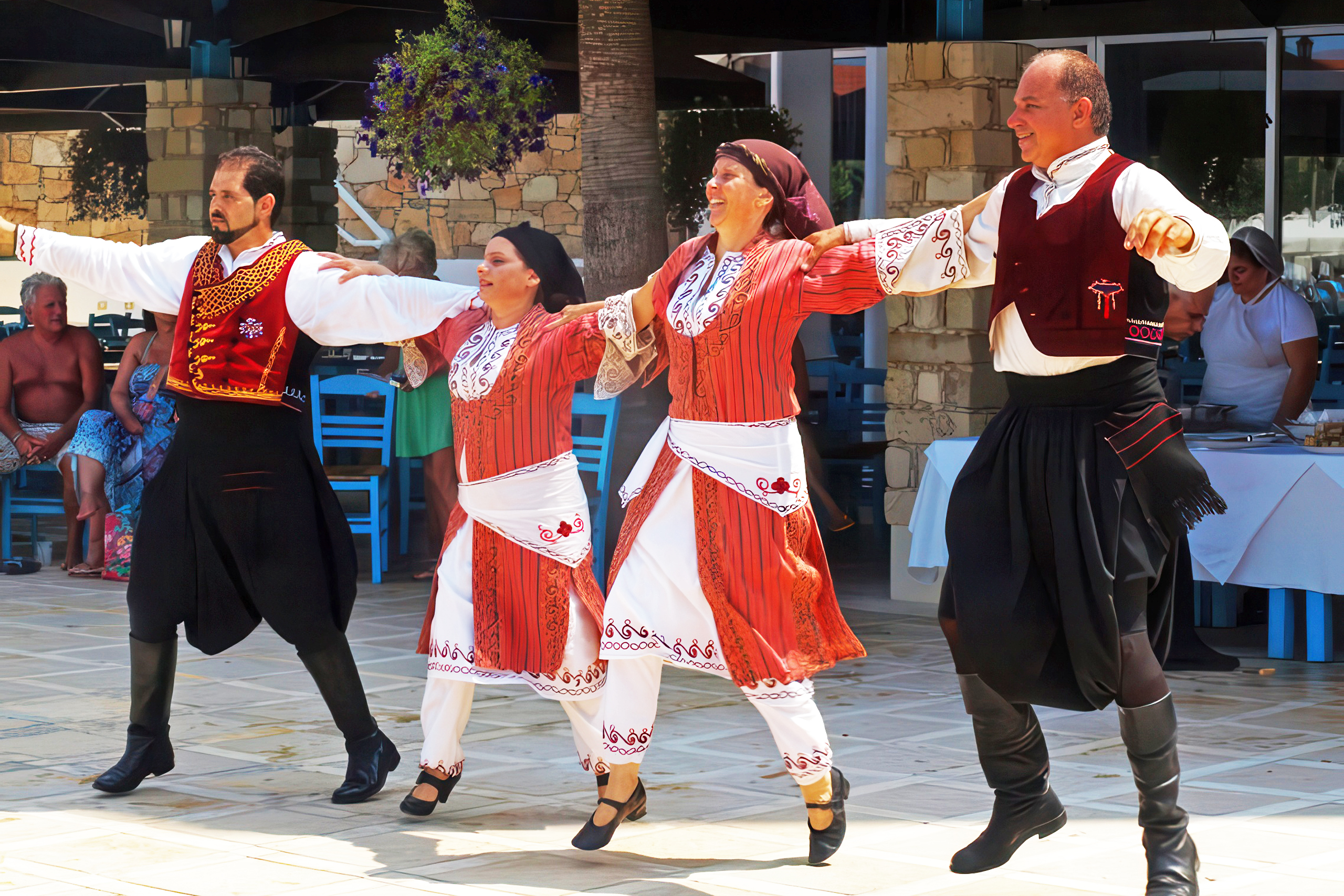 ● Synchronisation, especially in group dances like the Syrtos