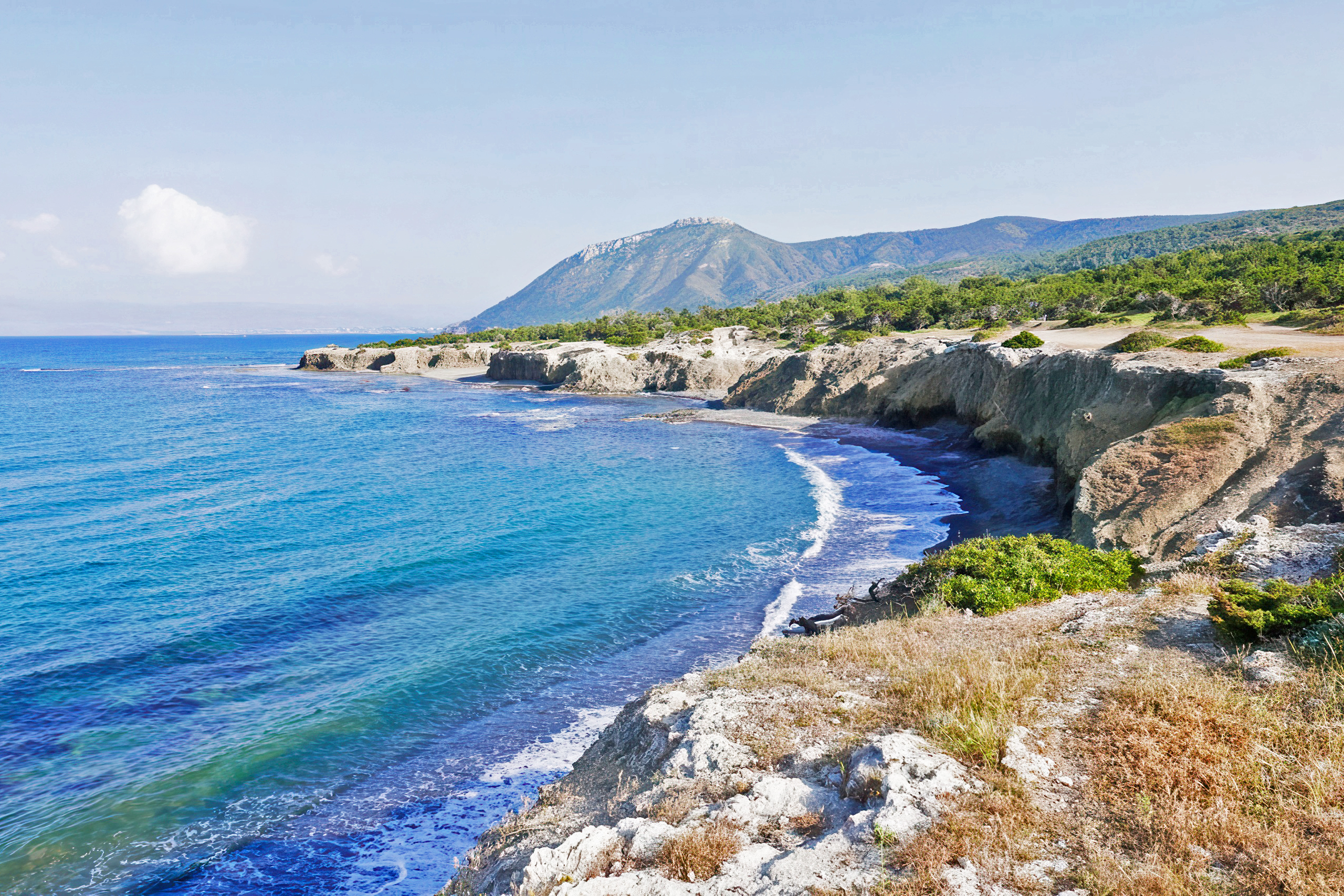 The northern coast features long sandy strips backed by the Pentadaktylos Mountains (Kyrenia range), where limestone peaks drop sharply toward the sea. Beaches here tend to be quieter and less developed, partly due to political division but also because of their geography – some are difficult to access, backed by steep slopes rather than flat coastal plains.