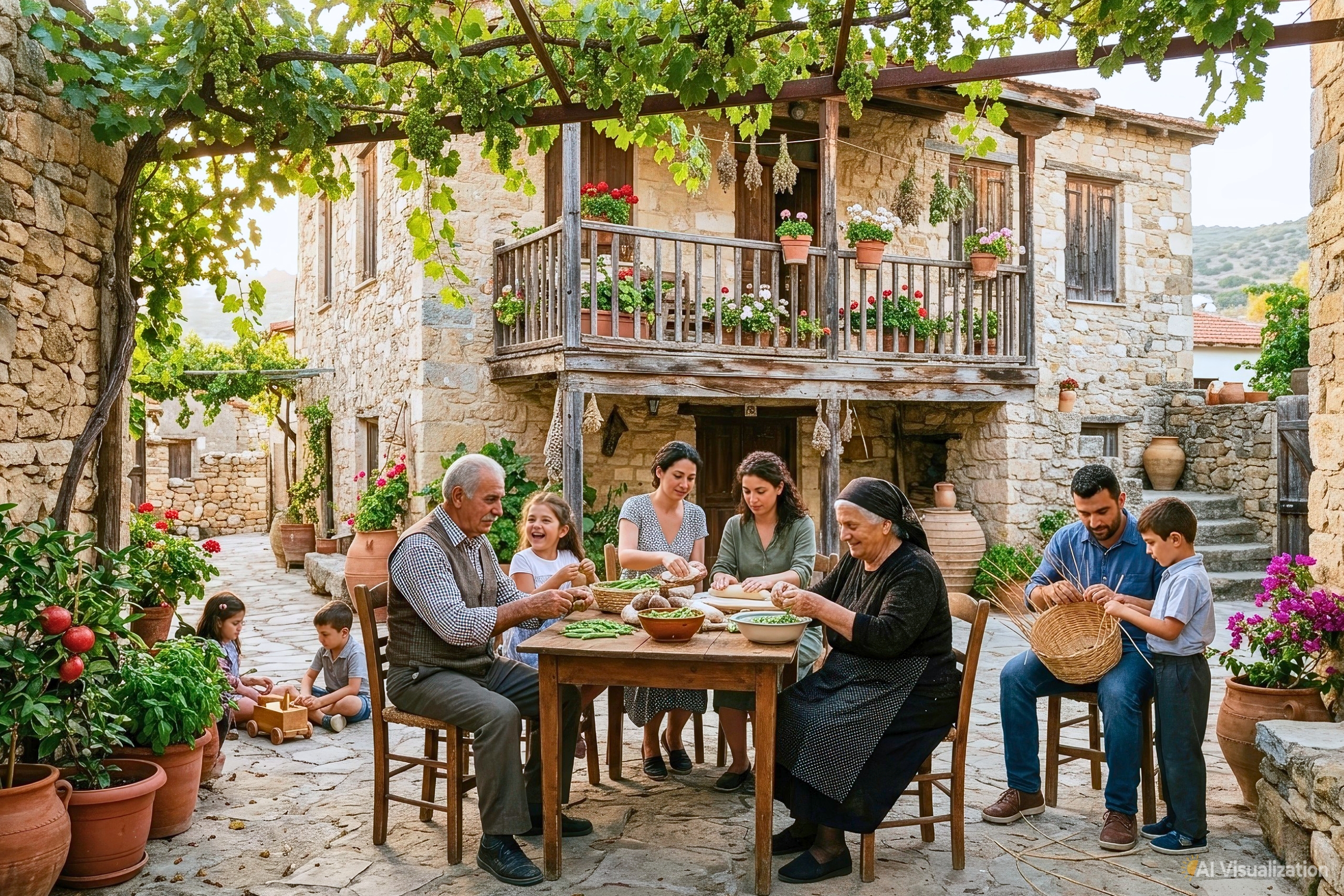 Daily village life in Cyprus revolved around close-knit family networks, communal labor, religious observances, and social gatherings that defined rural existence. Villages functioned as extended families where relatives lived in adjacent compounds, sharing courtyard spaces, agricultural tools, and economic responsibilities across generations.