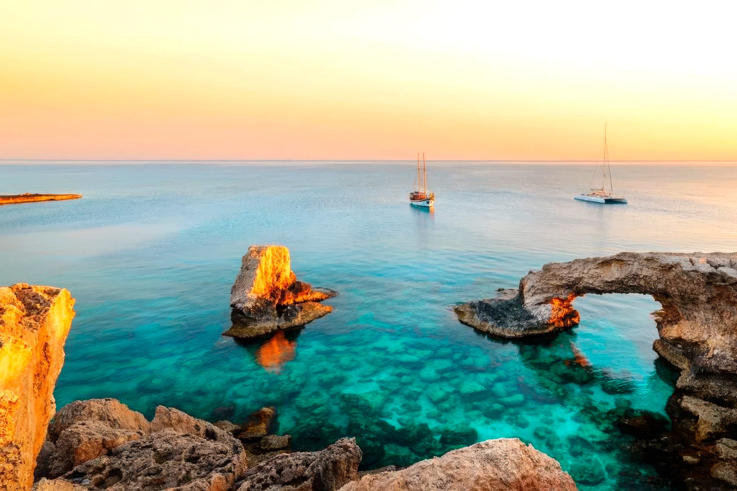At Cape Greco National Forest Park, the Agioi Anargyroi trail network showcases dramatic coastal features. The 2.3 kilometer circular trail starts at the historic church of Agioi Anargyroi, built above a sea cave where saints reportedly lived as ascetics. The route features dense Phoenician juniper vegetation and connects to the Sea Caves trail, which follows the coastline for 4 kilometers and passes the natural limestone bridge known as Kamara tou Koraka.