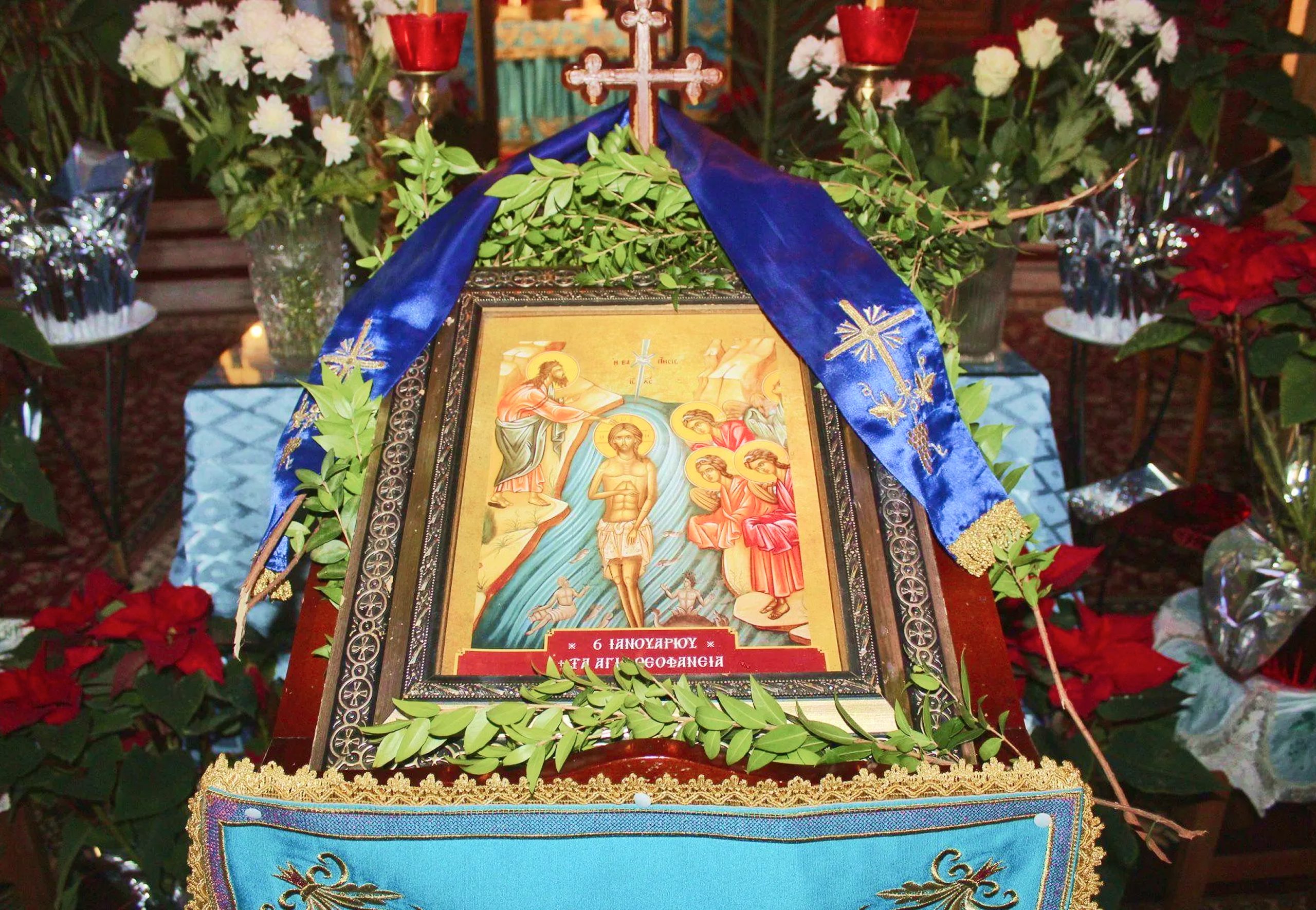 Church services on Epiphany eve and morning follow elaborate liturgical patterns specific to this feast. The Great Blessing of Waters occurs after the Divine Liturgy concludes, when priests bless large containers of water placed in the church center. The ceremony involves multiple prayers, hymns, and ritual actions including making the sign of the cross three times over the water with a lit candle. The priest then immerses a cross and basil sprig into the blessed water three times while the choir chants “When You Were Baptized in the Jordan, O Lord.”