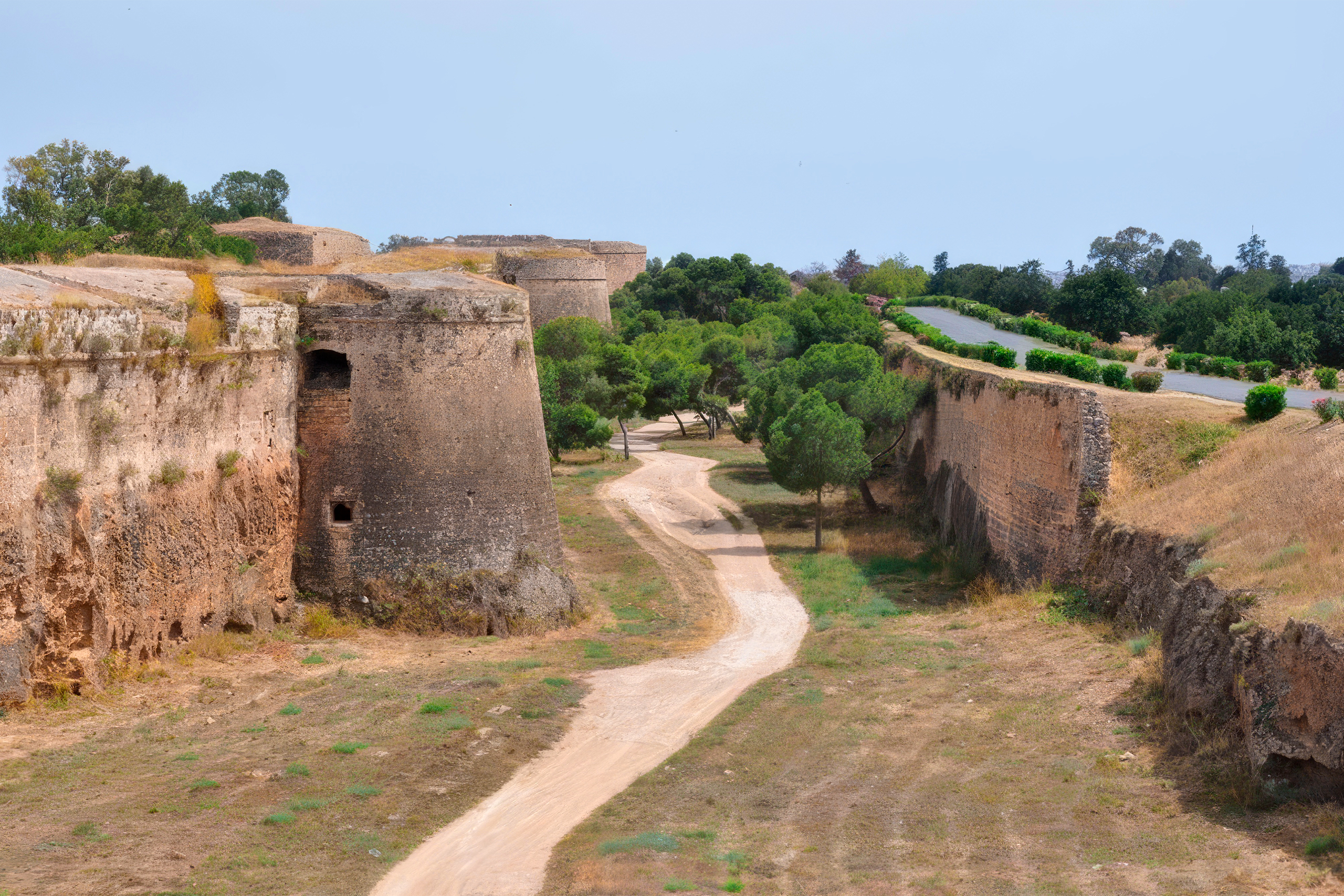 The structure covers over one square mile and features walls up to six meters thick. These massive walls incorporated earth as a primary material to absorb cannonball impacts. The bastion’s profile was deliberately built low, presenting a minimal target to enemy artillery while still maintaining commanding height over the surrounding moat.