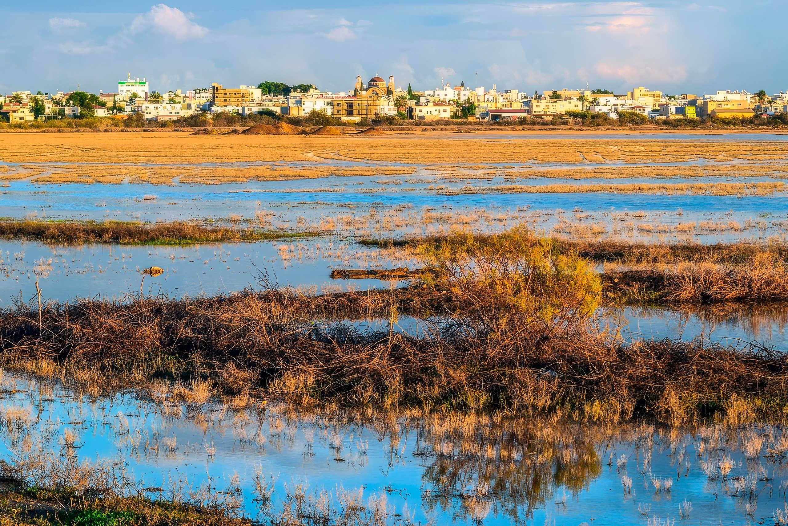 The Famagusta district hosts several seasonal salt lakes and wetlands that transform dramatically between summer and winter. Paralimni Lake, a natural seasonal wetland in the Famagusta district, is one of the few remaining wetlands of its kind in Cyprus.