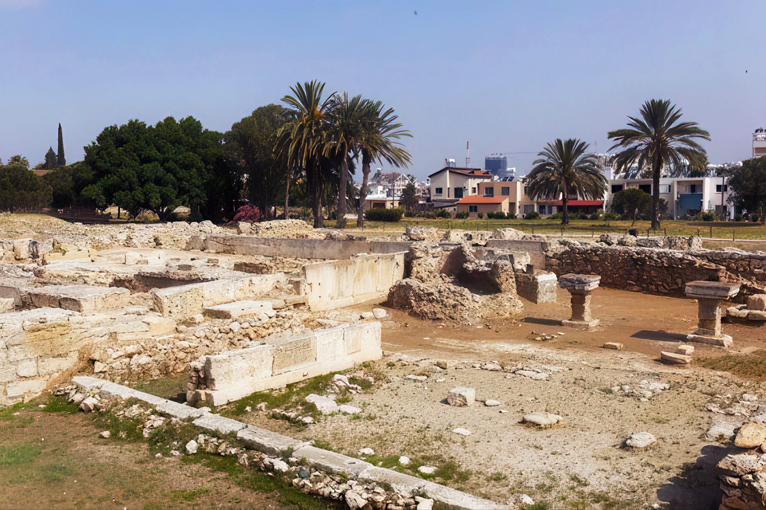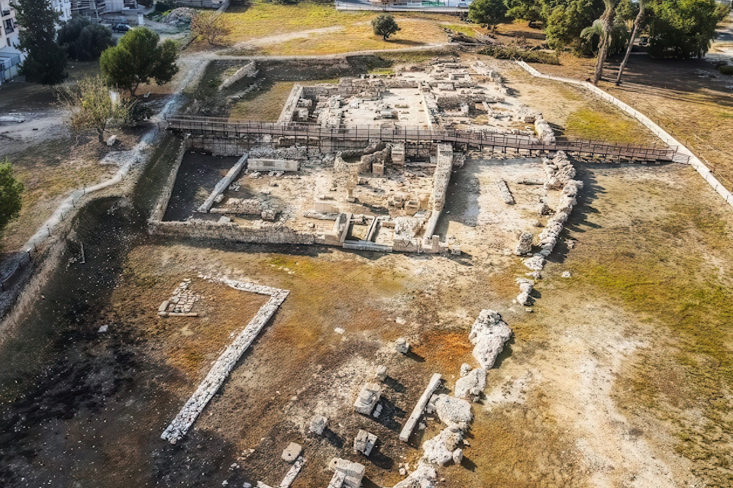 Kition, located beneath modern Larnaca on Cyprus’s southeastern coast, served as a major Bronze Age settlement before the Phoenicians arrived. The site contains five successive temples dated from the late 13th to the late 11th century BC, built during the Late Bronze Age when Mycenaean Achaeans inhabited the city.