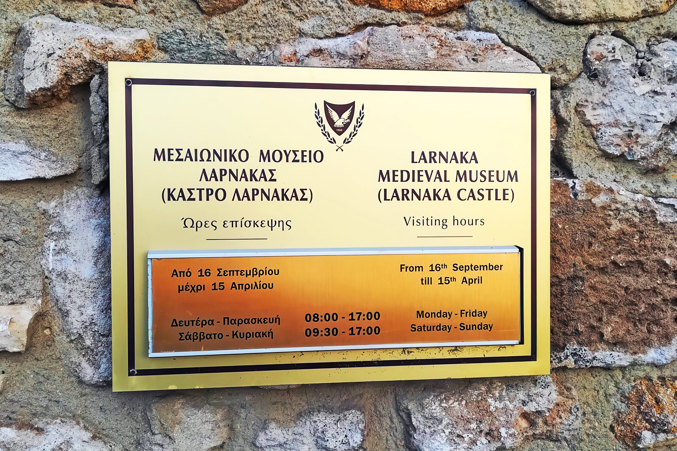 Larnaca Fort is open to visitors year-round, with extended hours during summer months. Winter hours typically run from 8:00 AM to 5:00 PM, while summer hours extend from 8:00 AM to 7:30 PM. Weekend hours are abbreviated to 9:30 AM to 5:00 PM regardless of season. The entrance fee is modest at €2.50, with free admission for senior citizens.