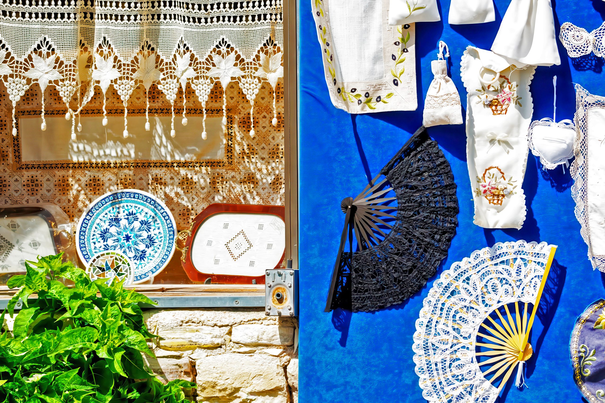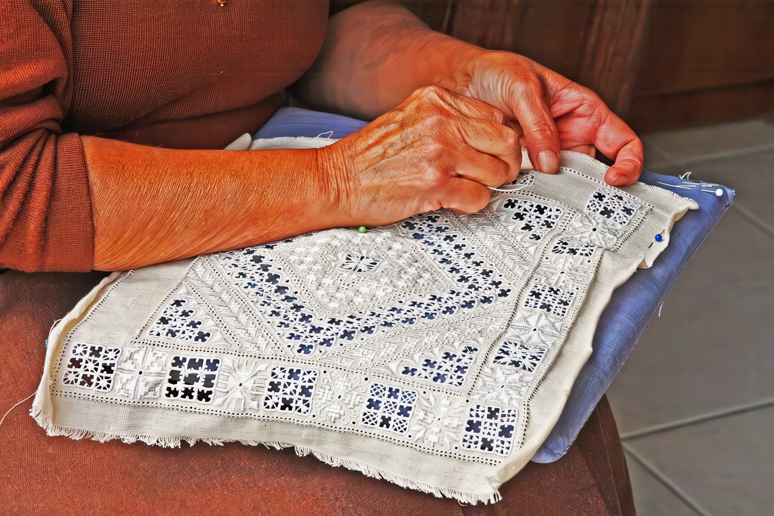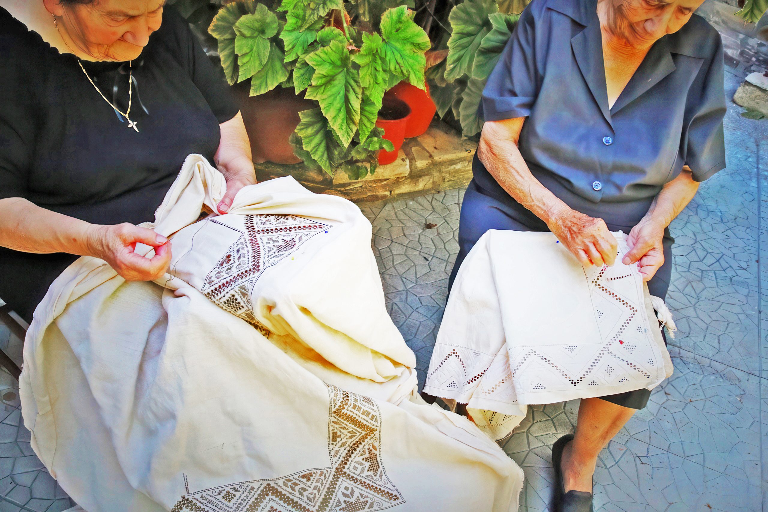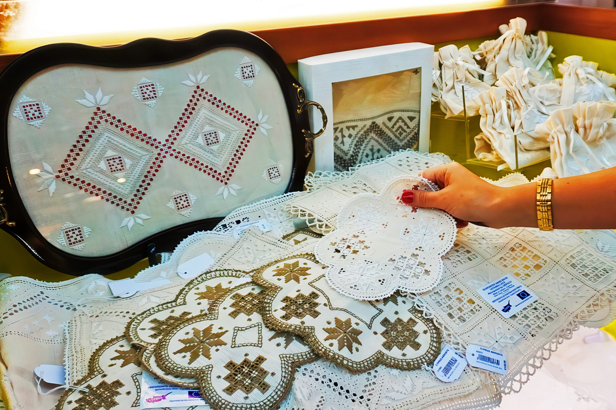 The process begins with “dafna,” a counted thread technique where threads are pulled to create openwork, followed by needlepoint fillings like “venise” for dense motifs. Artisans, almost always women, work for hours on frames, passing skills orally from mother to daughter, preserving a lineage that UNESCO highlights for its role in gender-specific knowledge transmission. In a world of mass production, Lefkaritika stands as a testament to handmade excellence, blending aesthetic beauty with symbolic meanings tied to fertility, protection, and harmony.