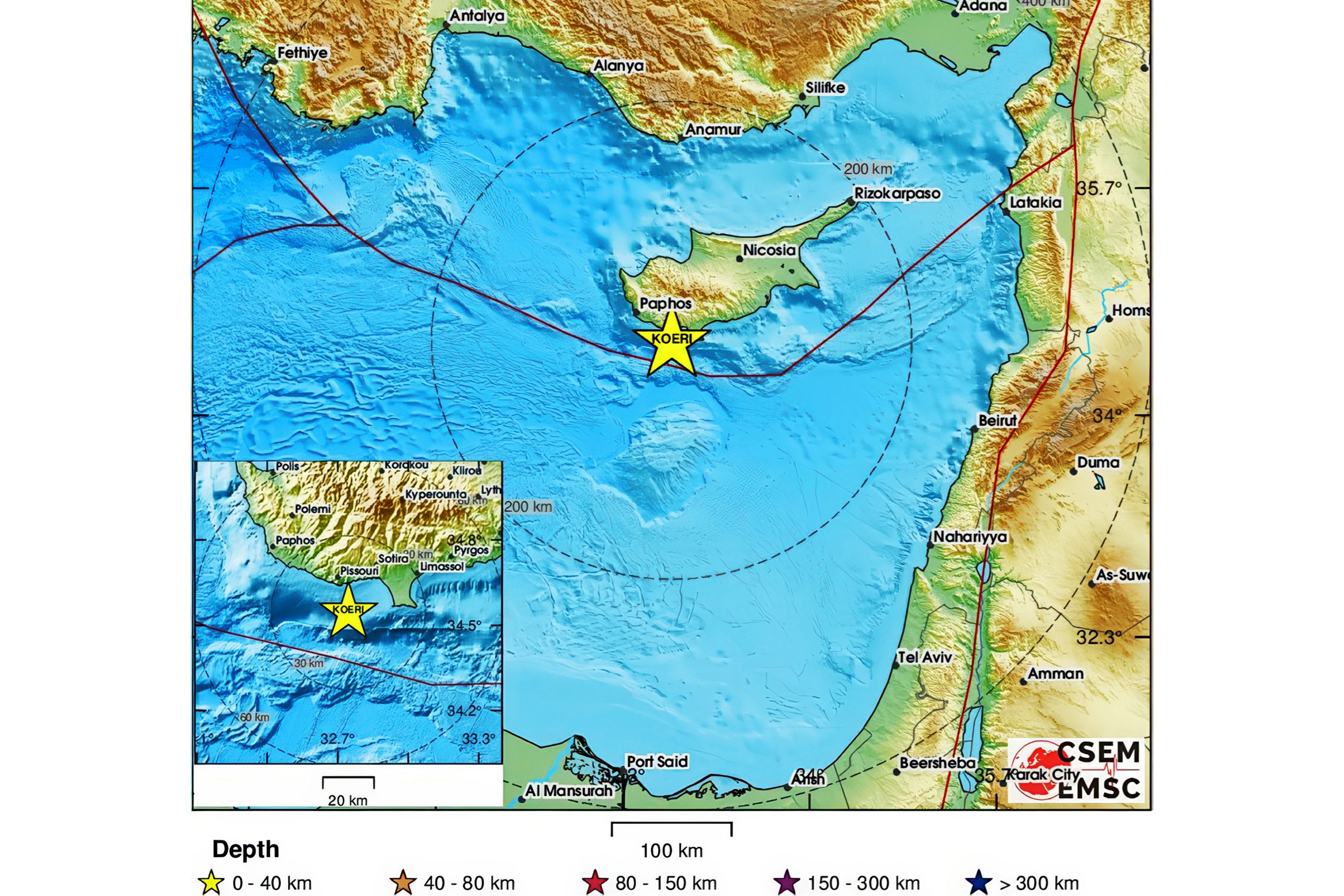 Earthquakes occur regularly in Cyprus, especially in the Limassol and Paphos districts. Most are small and cause no damage, but historical records document destructive earthquakes in 15 AD, 332 AD, 342 AD, and more recently in 1953 and 1995. These earthquakes happen along faults related to the ongoing collision between Africa and Anatolia.