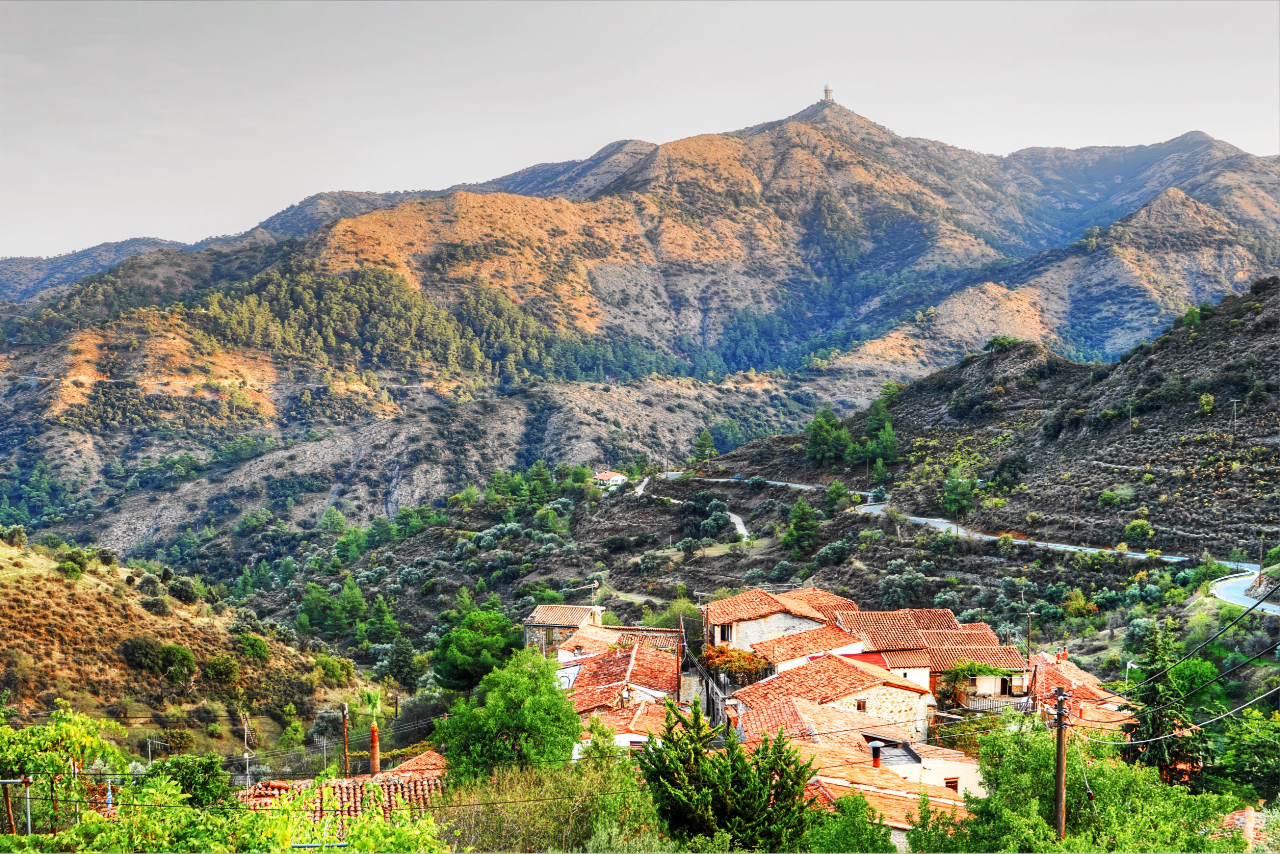 The Kionia viewpoint provides panoramic vistas across central Cyprus, extending to distant mountains and coastal plains on clear days.