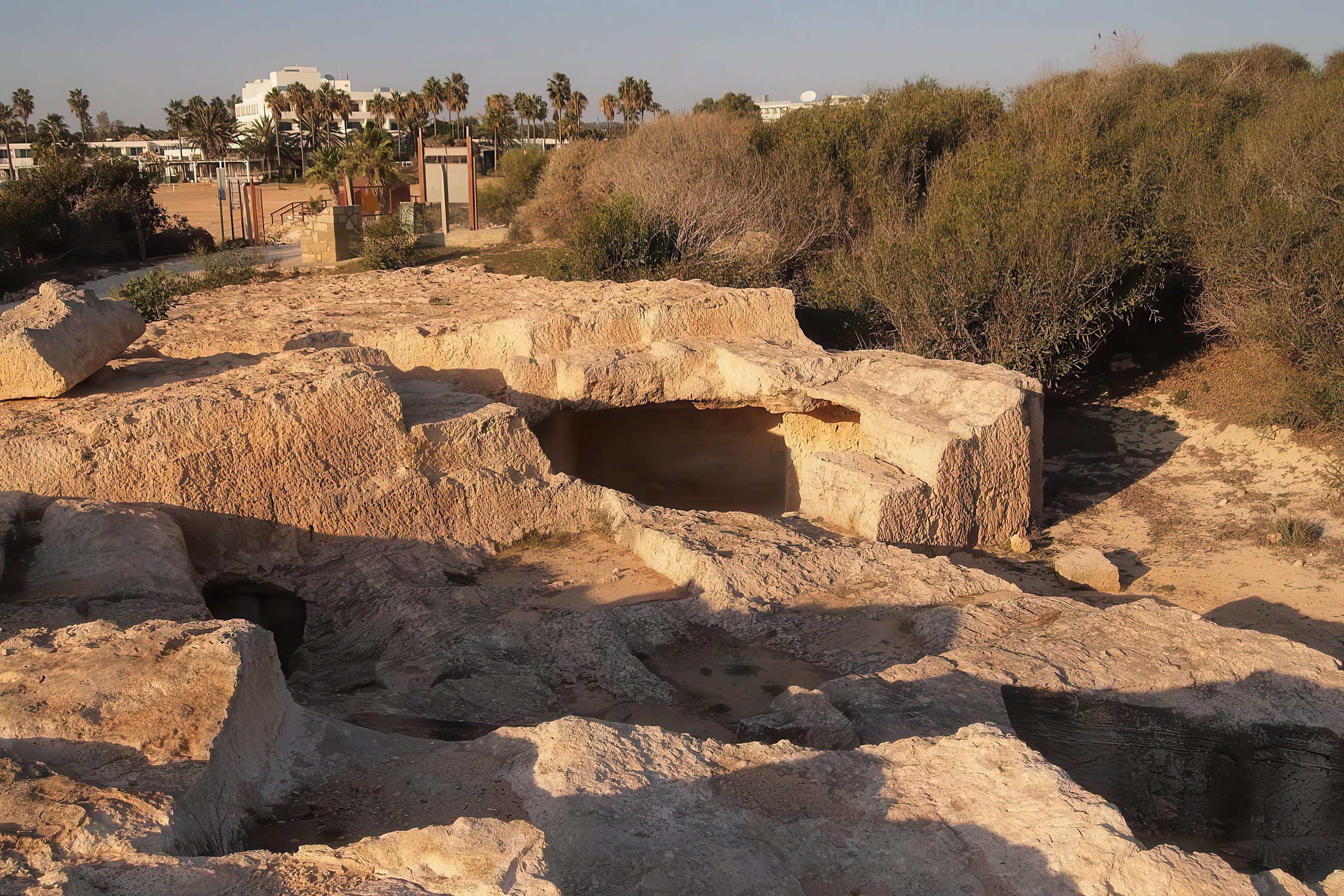 The Makronissos Necropolis sits just behind the beach and contains 19 rock-cut tombs from the Hellenistic and Roman periods. The Municipality of Ayia Napa sponsored intensive excavations between November 1989 and January 1990. These tombs had been targets of illegal digging since 1872, which damaged many of the burial chambers and removed valuable artifacts before archaeologists could study them properly.