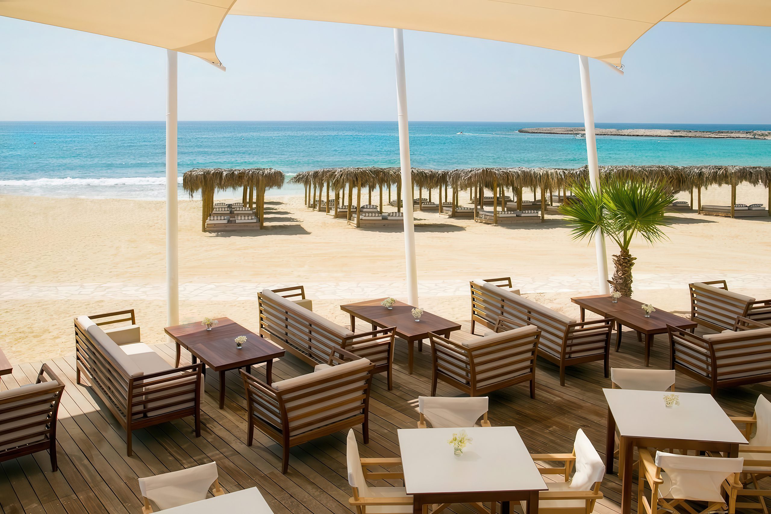 The area around Makronissos Beach includes several dining options. The Makronissos Beach Bar sits directly on the sand and serves everything from light snacks to full meals. Visitors can order burgers, sandwiches, salads, and traditional Cypriot dishes without leaving the beach.