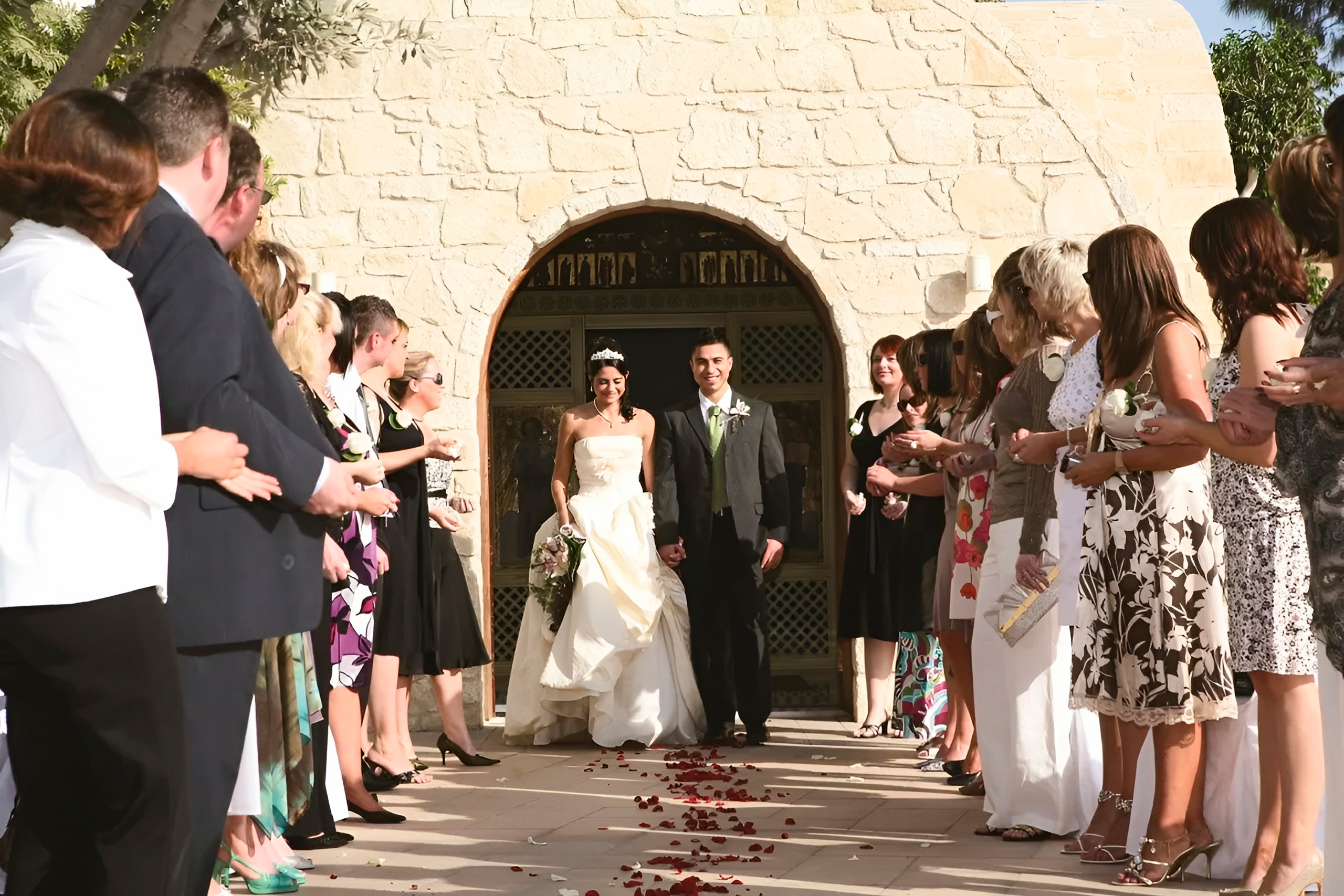 Wearing the stefana, the couple exchanges wedding rings three times before placing them on the fourth finger of each other’s right hand to recognize that God’s right hand is the hand that blesses. During the ceremony, the priest serves the couple prosfora, ceremonial bread, and koumandaria, red Cypriot wine, three times, symbolizing the wedding at Cana where Christ blessed marriage.