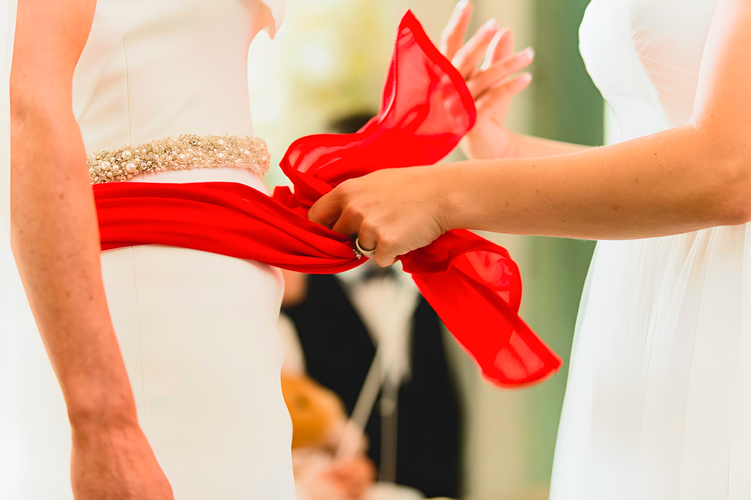 A ribbon binds the two crowns together, representing the lasting union between bride and groom. This ribbon must be kept intact for a lifetime. The marriage crowns are extremely important to the couple who often save them and place them on display in their new home, and may even be buried in them.
