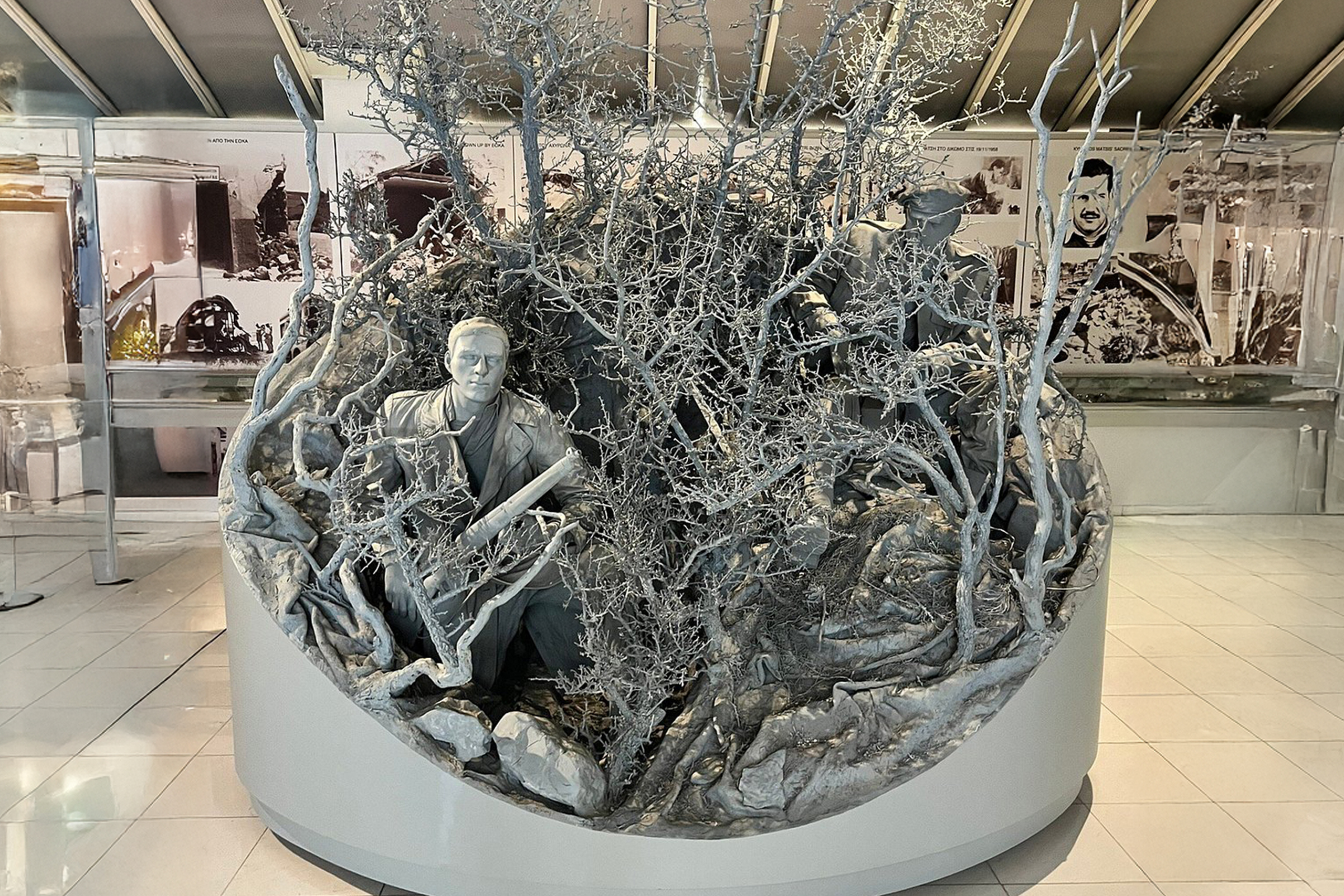 Exhibits include life-size statue scenes depicting key moments from the struggle. The museum displays weapons used by EOKA fighters, official British documents, photographs of operations and fallen fighters, and various forms of memorabilia related to the liberation movement. Some photographs show graphic images of Greek Cypriot fighters who were killed, including charred or dismembered bodies, providing visitors with an unfiltered view of the conflict’s violence.