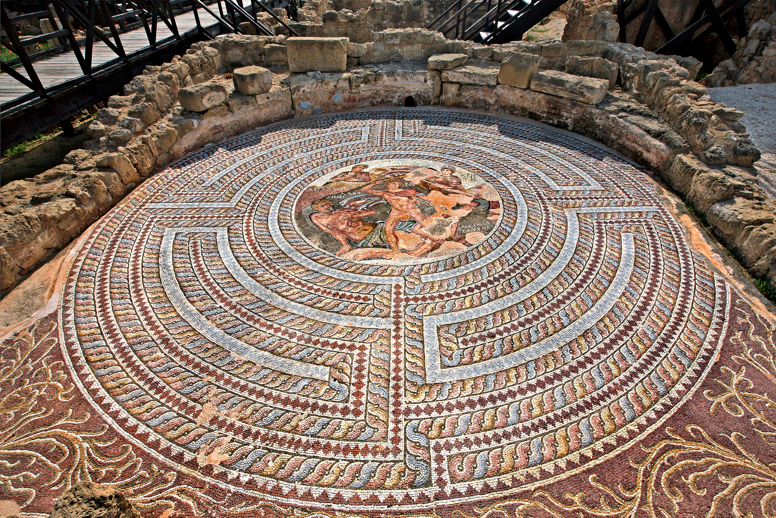 Certain discoveries highlight the approach’s ingenuity. A chariot race mosaic from Akaki, dated to the 3rd century AD, captures horses and drivers in motion, encircling the floor to replicate the event’s loops. The House of Theseus in Paphos contains a mosaic outlining the hero’s confrontation with the Minotaur, progressing from labyrinth navigation to combat within a unified composition. Bichrome vases from the 8th century BC feature dancers in ritual formations, with poses interconnecting around the vessel like continuous strips. Sarcophagi from Amathus depict souls advancing through gates under divine guidance, inscribed in encircling bands. These instances demonstrate the compression of dynamic content into bounded formats.